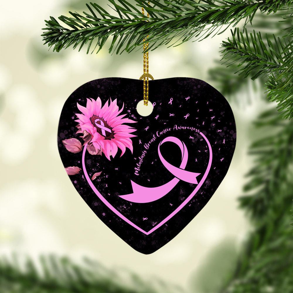 Shop Metastatic Breast Cancer Awareness Decorative Ornament Keepsake-Holiday Flat Heart Porcelain Ceramic Ornament.