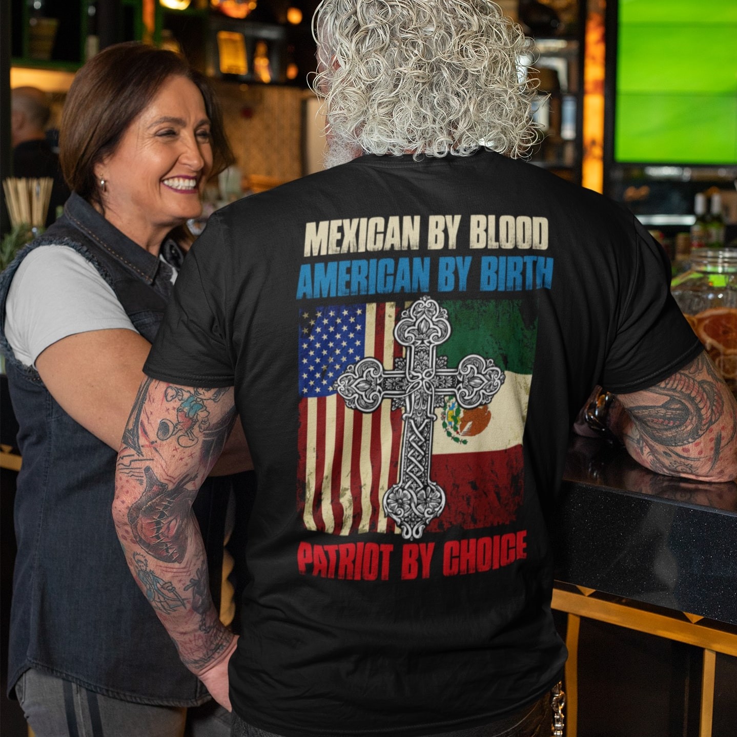 Mexican By Blood American By Birth Patriot By Choice Print On Back T-Shirt Only – Plain Front Shirt