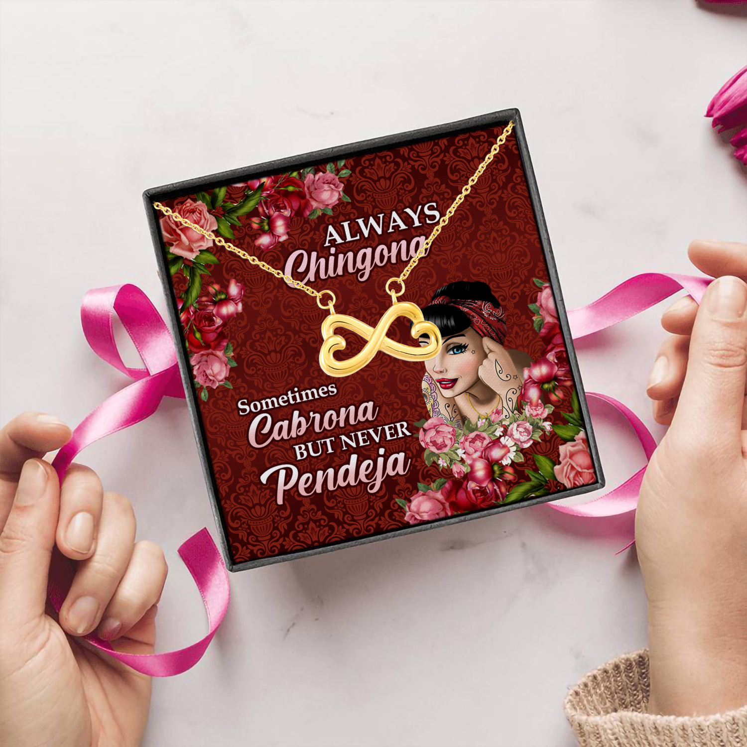 Let’s Shop Mexico Girl Always Chingona Sometimes Cabrona but Never Pendeja Infinity Heart Pendant Necklace!
