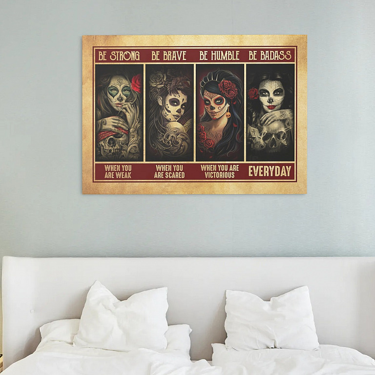 Let’s Shop Mexican Sugar Skull Be Strong Be Brave Be Humble When You Are Weak Everyday Framed Canvas Prints – Unframed Poster!