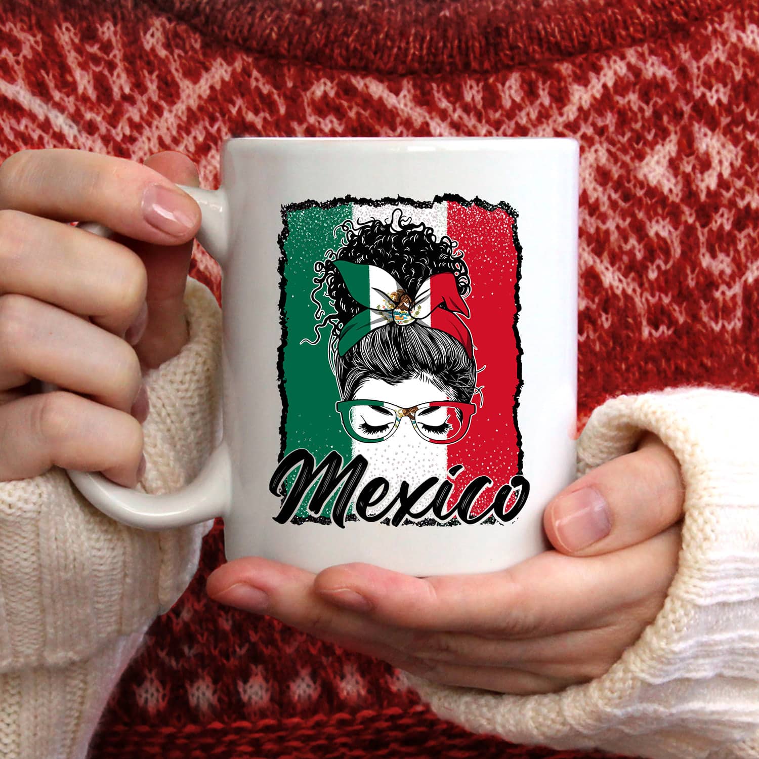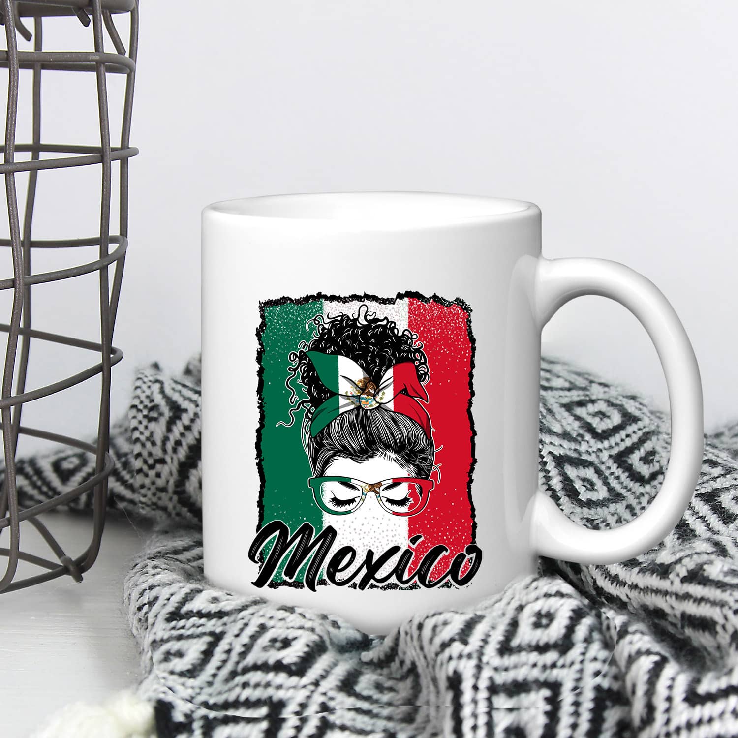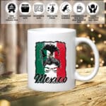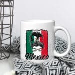 Let’s Shop Viva Mexico Messy Bun With Bandana And Glasses Mexican Flag Coffee Mug Cups!