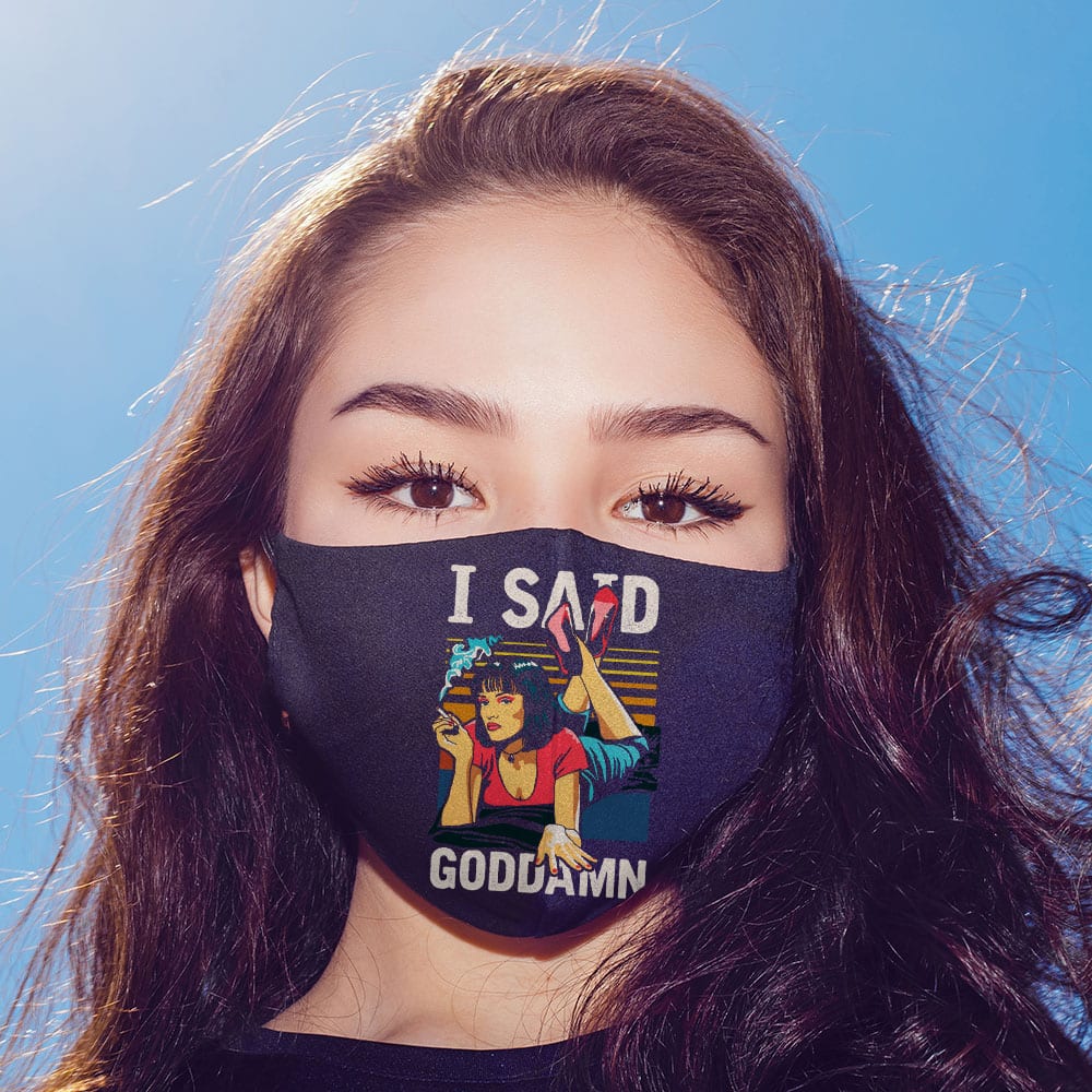 Shop Vintage Mia Wallace Uma Thurman I Said Goddamn Washable Reusable Custom – Printed Cloth Face Mask Cover.