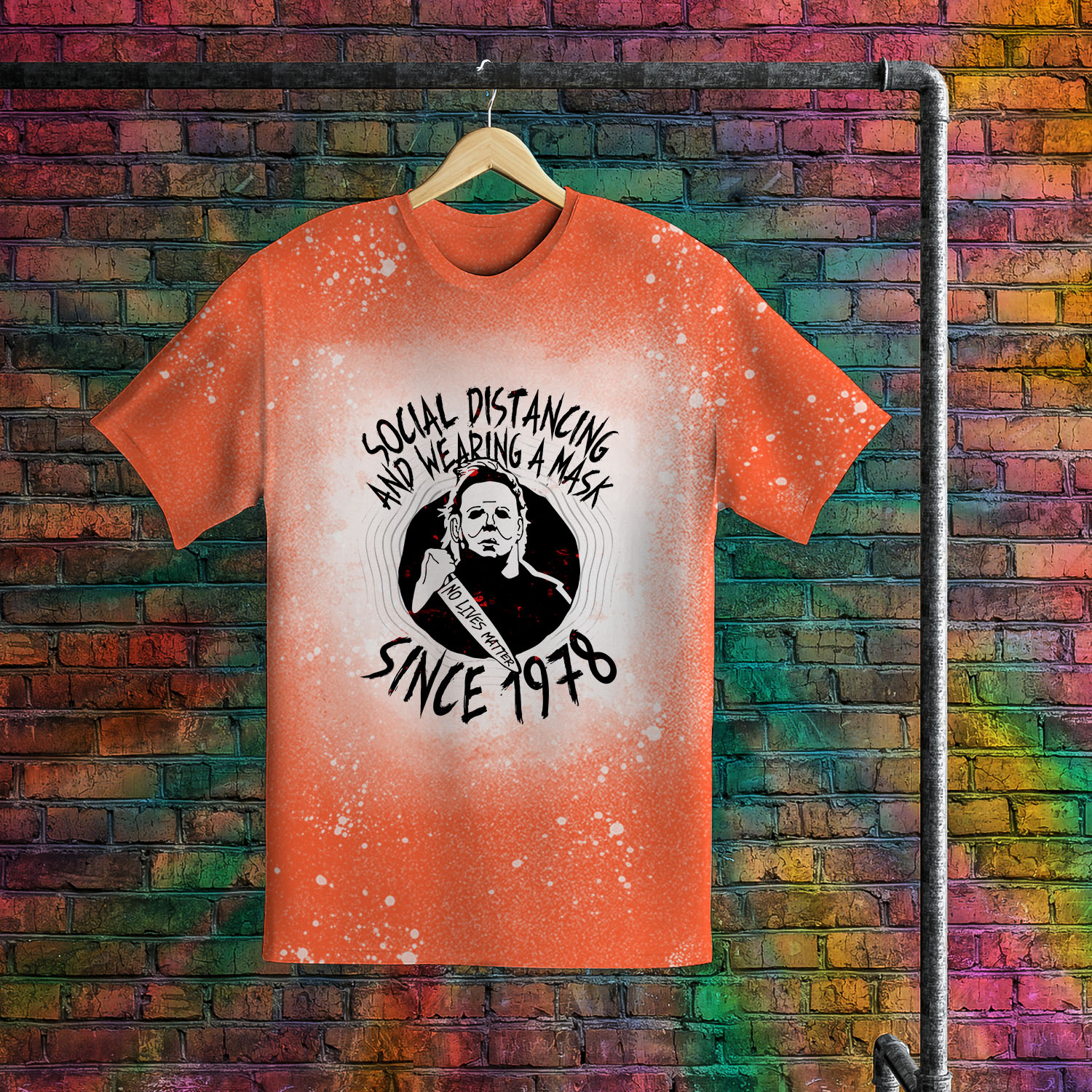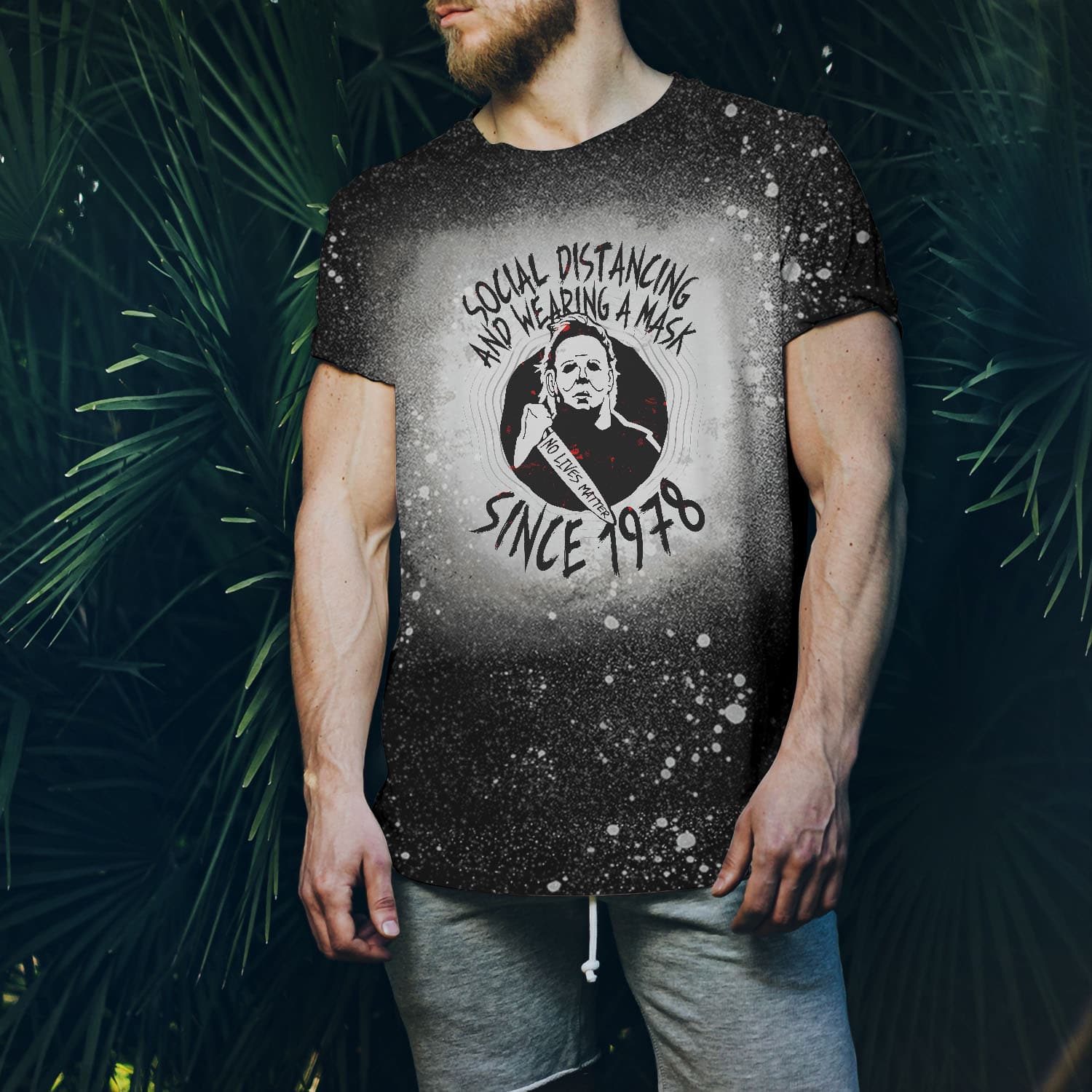 Social Distancing And Wearing A Mask Since 1978 Michael Myers Halloween Sublimation Bleached T-shirt