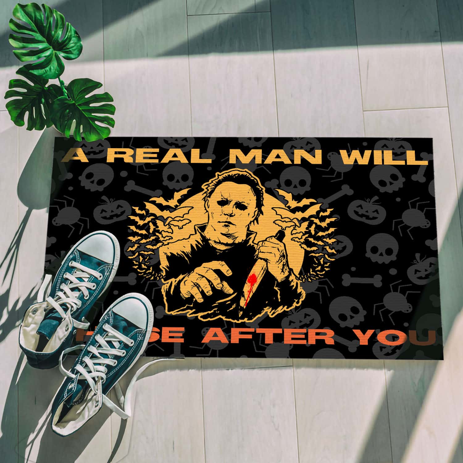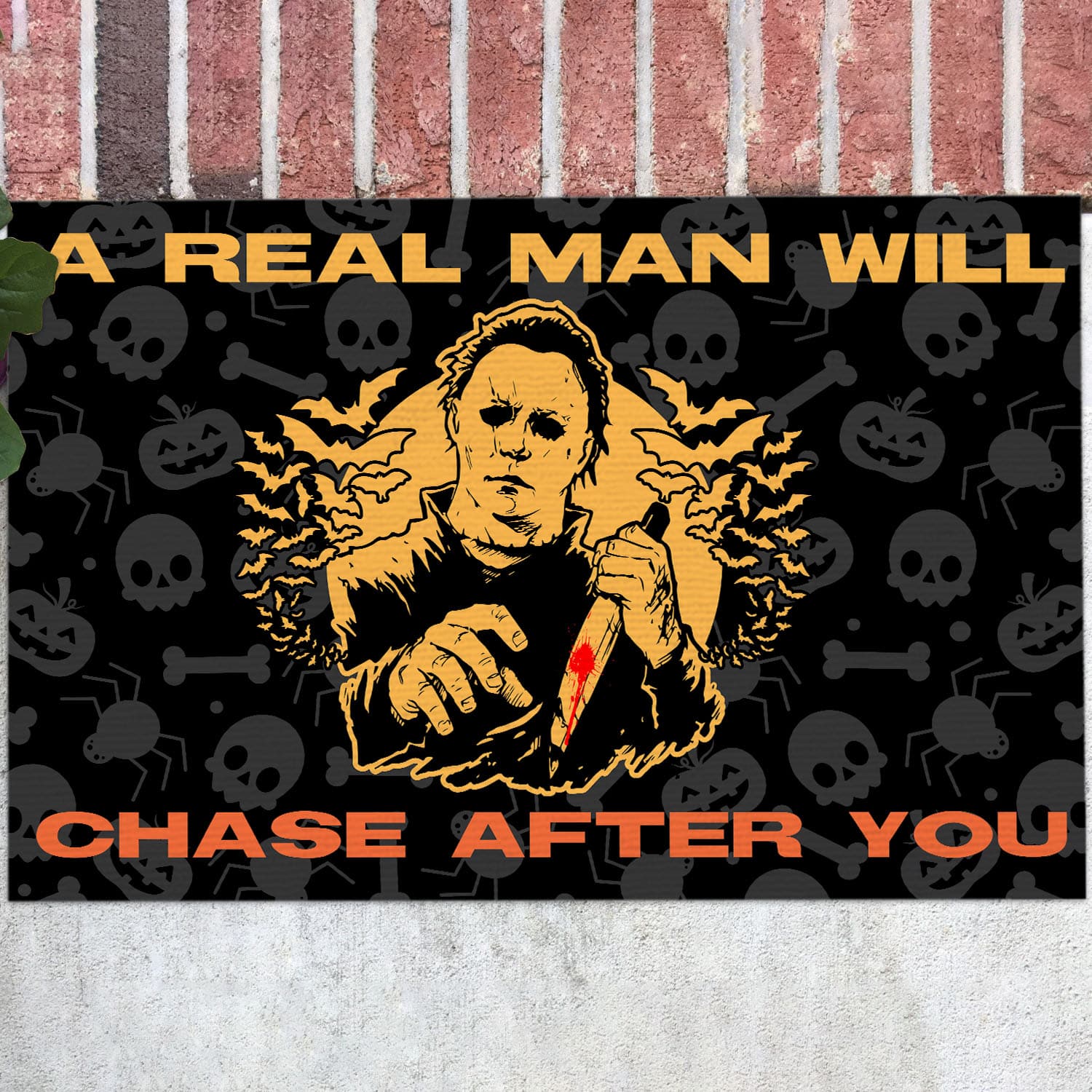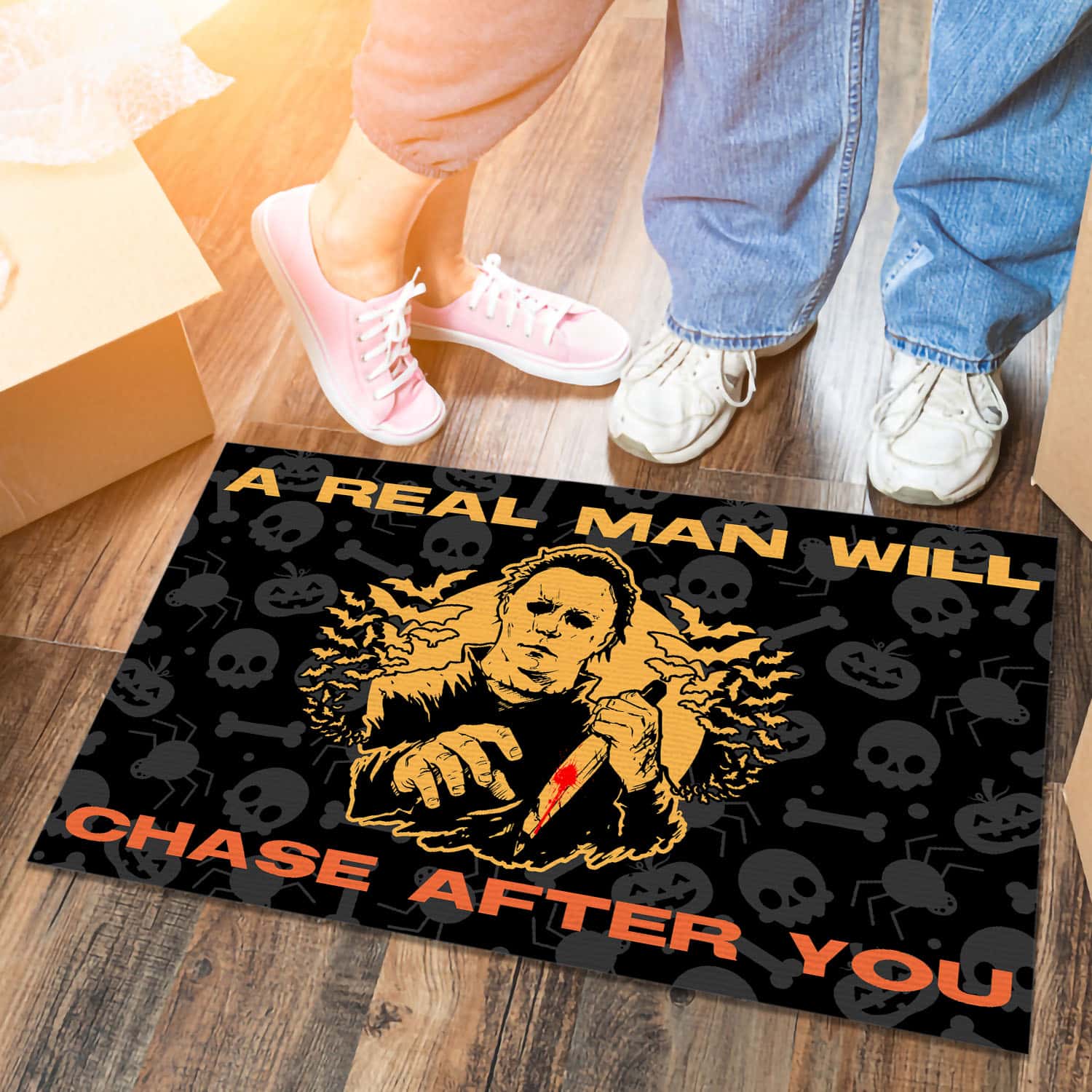 Let’s Shop Michael Myers A Real Man Will Chase After You Funny Halloween 1978 Welcome Indoor Outdoor Doormat!