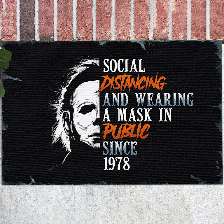 Let’s Shop Michael Myers Social Distancing And Wearing A Mask In Public Since 1978 Funny Halloween Indoor Outdoor Doormat!