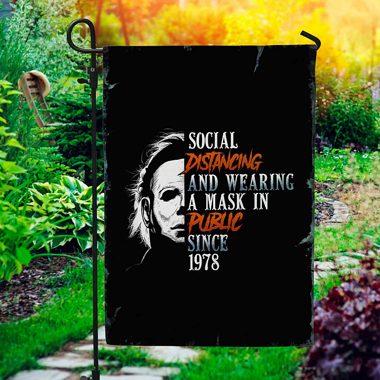 Let’s Shop Michael Myers Social Distancing And Wearing A Mask In Public Since 1978 Garden Flag – Halloween House Flag!
