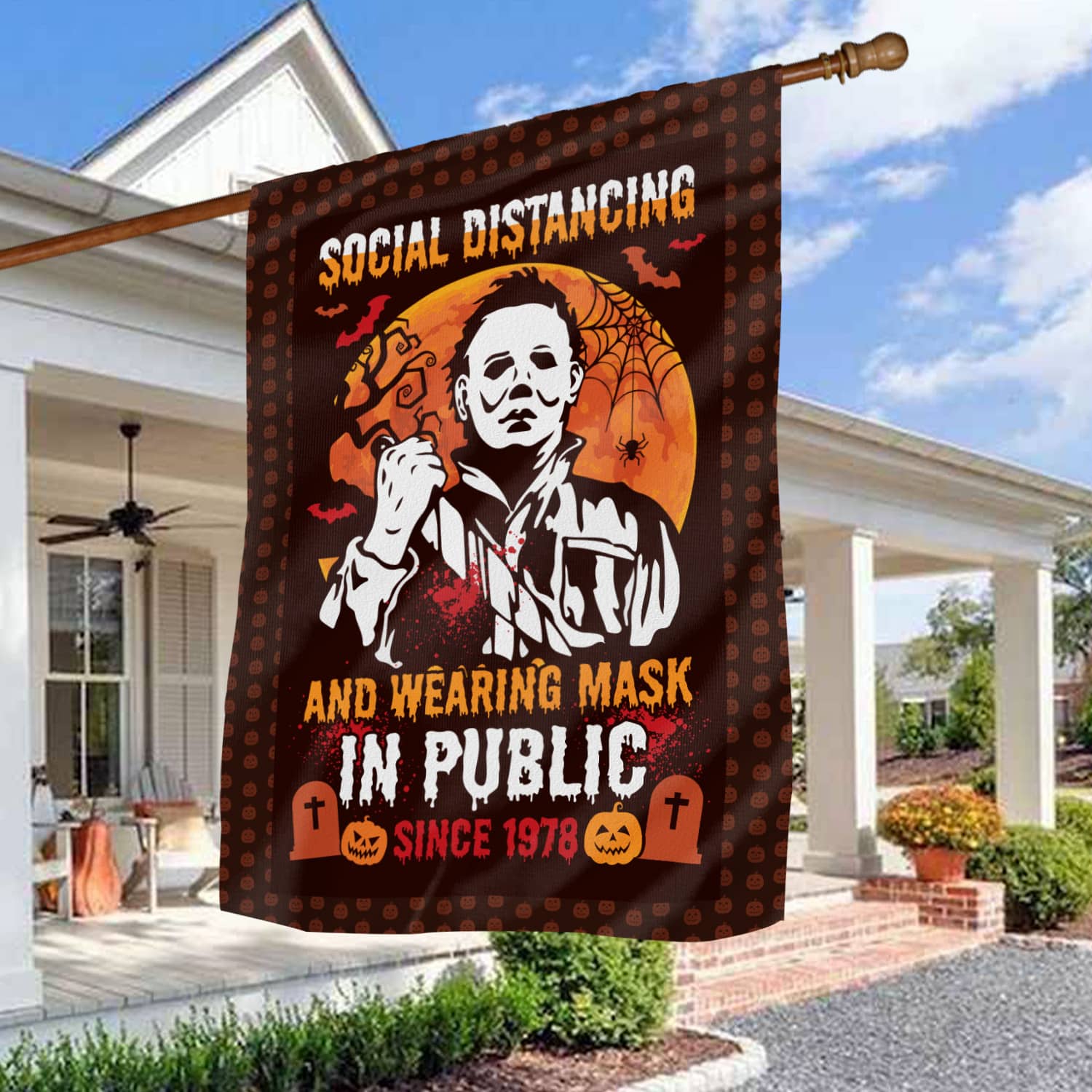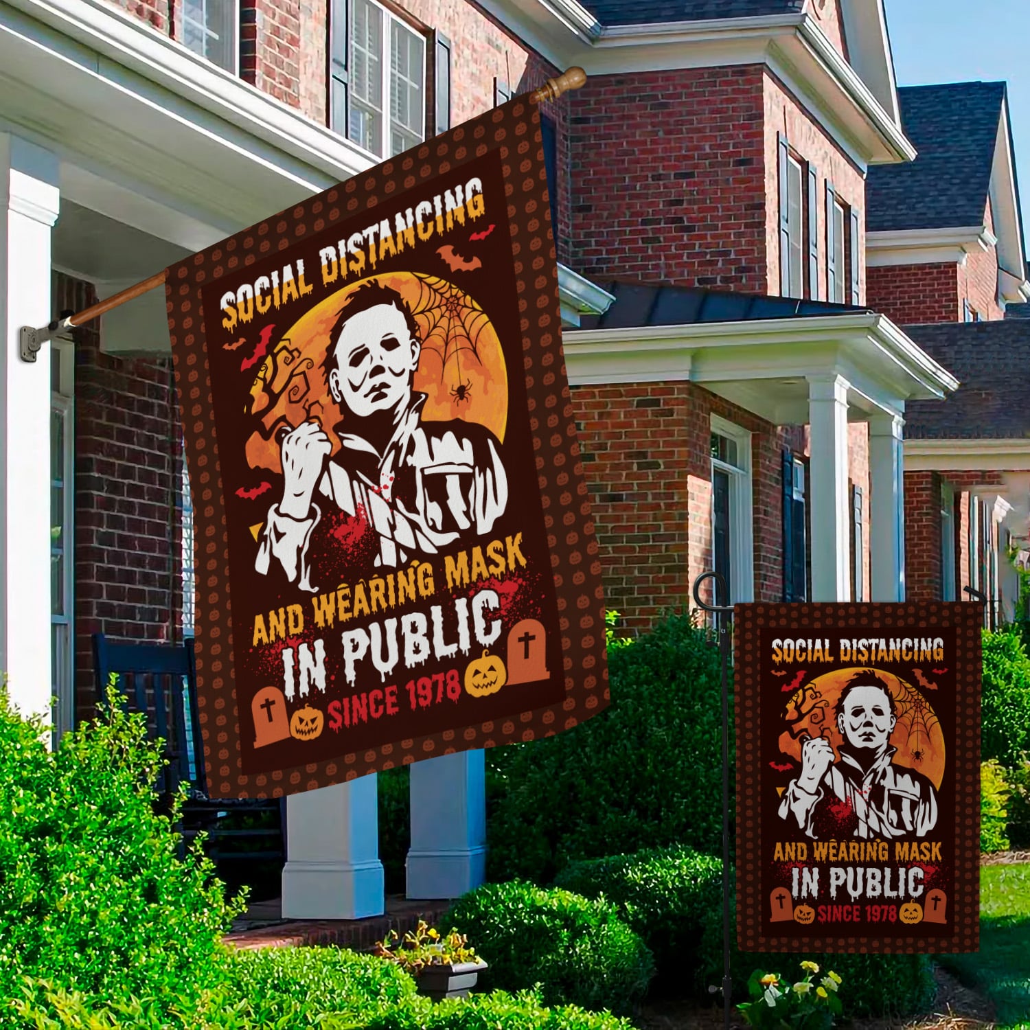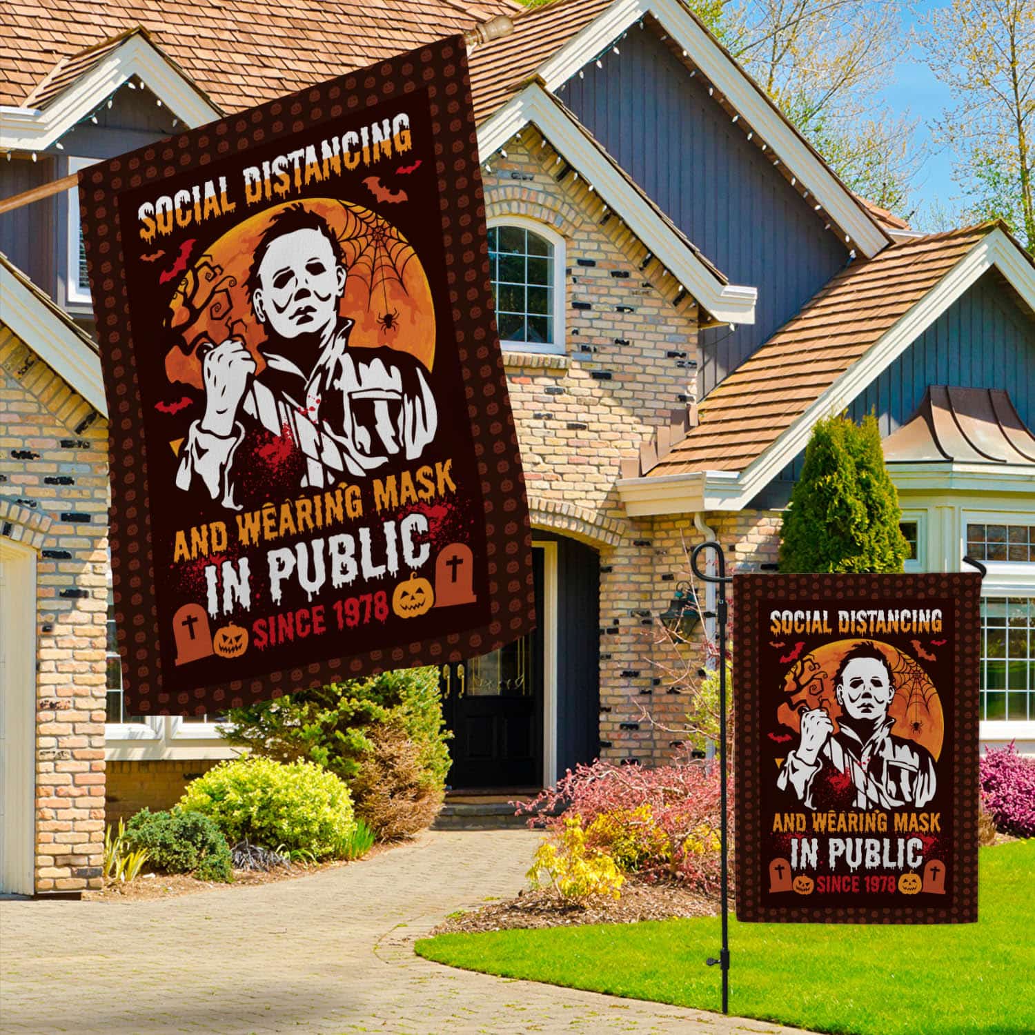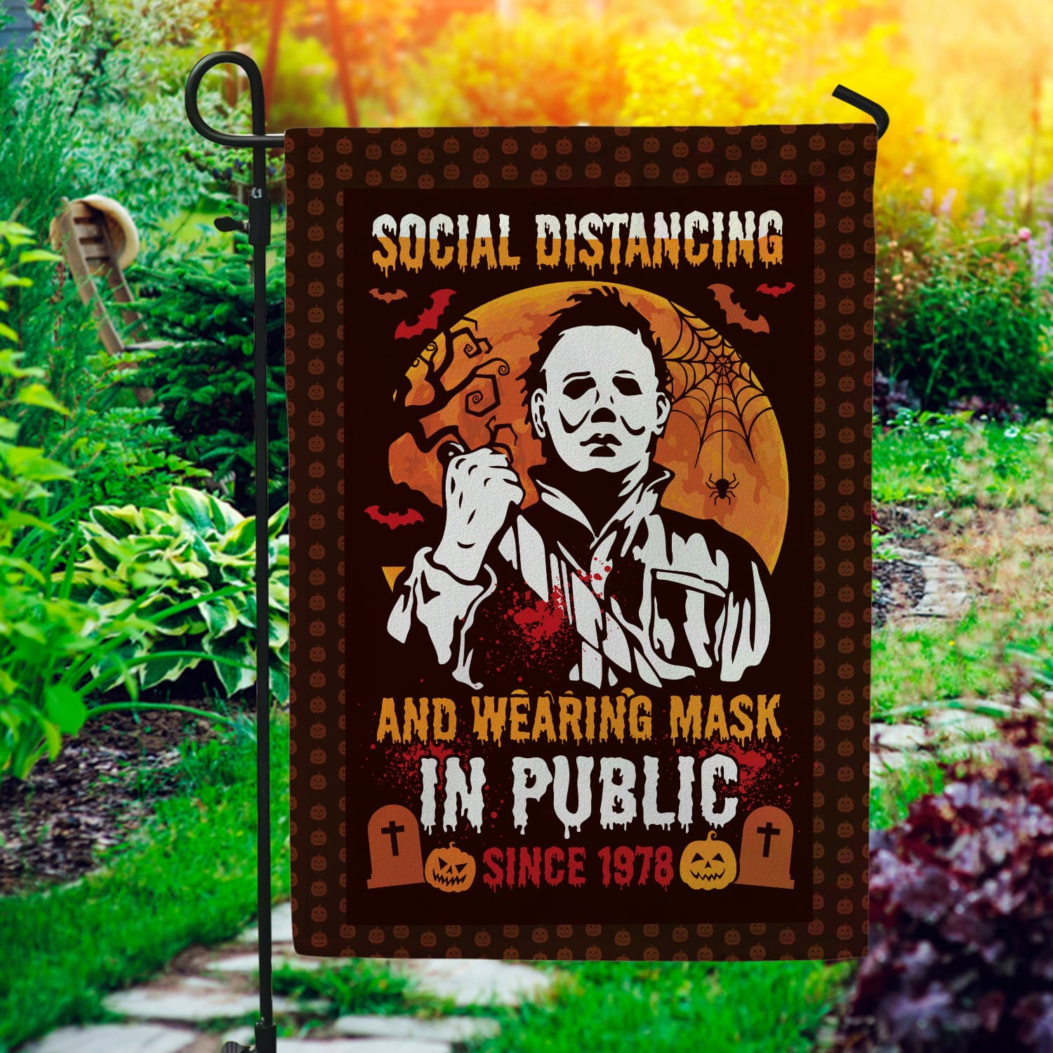 Let’s Shop Social Distancing And Wearing Mask In Public Since 1978 Decorative Garden Flag – Funny Halloween Movie Character Flag!
