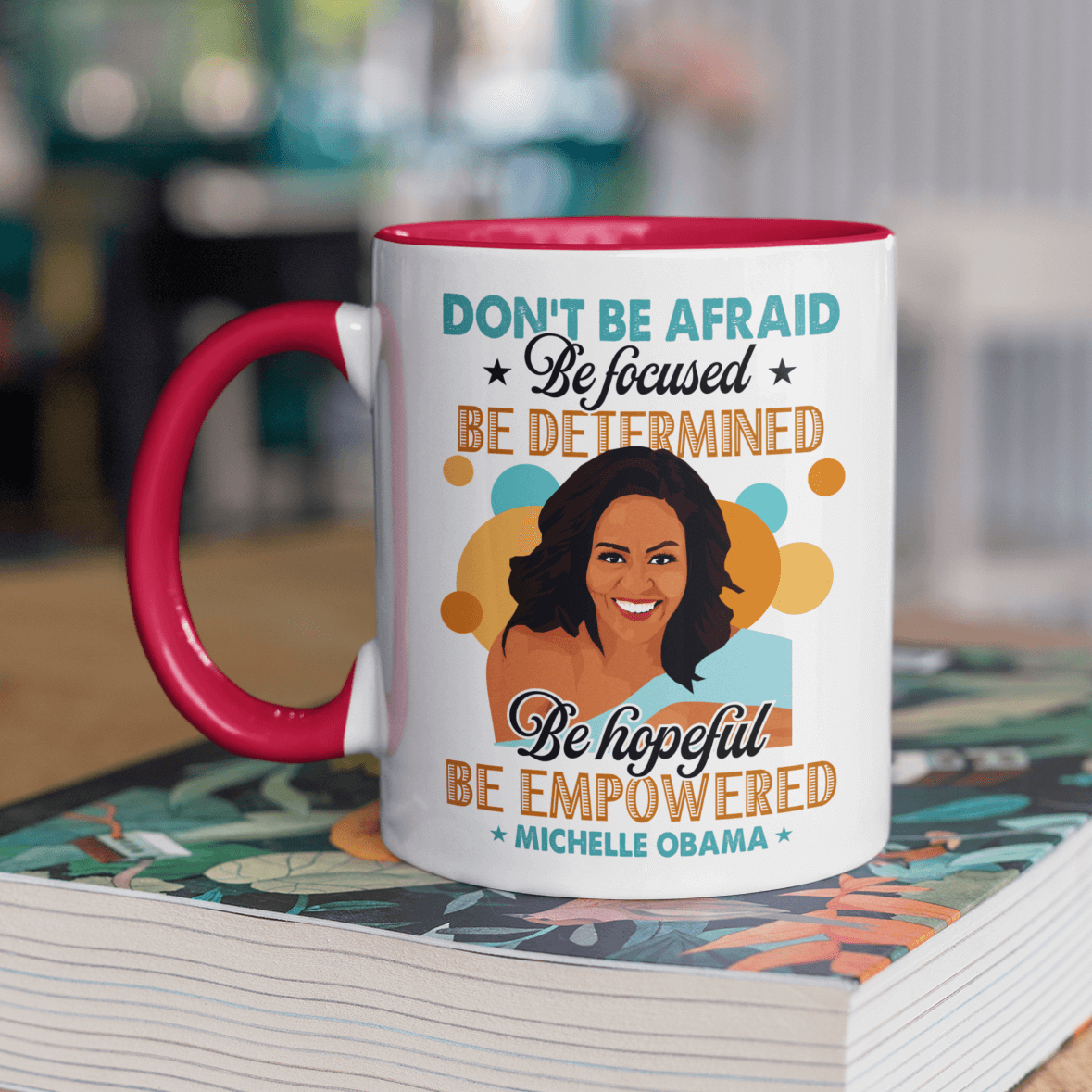 Let’s Shop Michelle Obama Don’t Be Afraid Be Focused Be Empowered – First Lady Feminist Motivation Accent Mug!