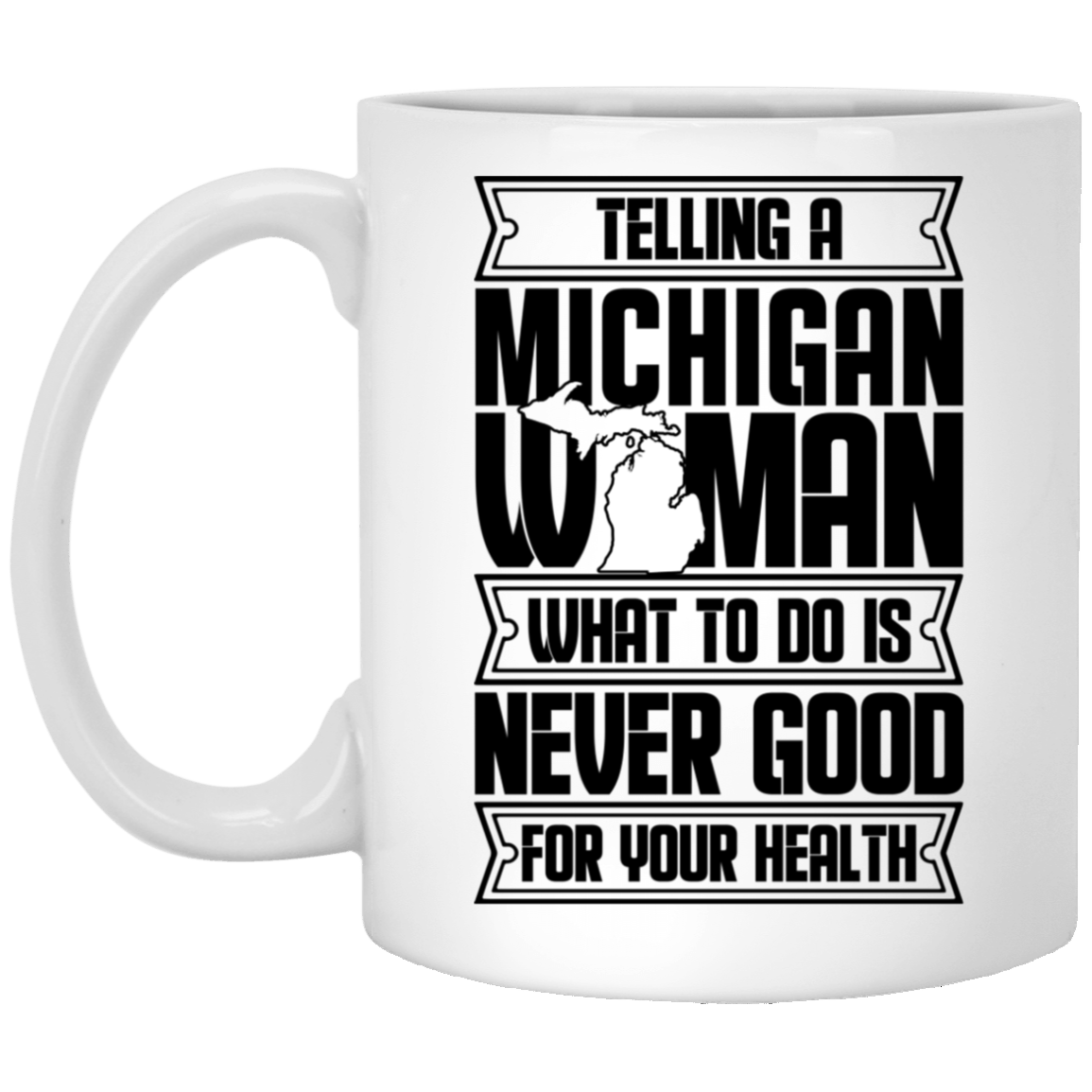 Shop Telling A Michigan Woman What To Do Is Never Good For Your Health Coffee Mug – Beer Stein – Water Bottle.
