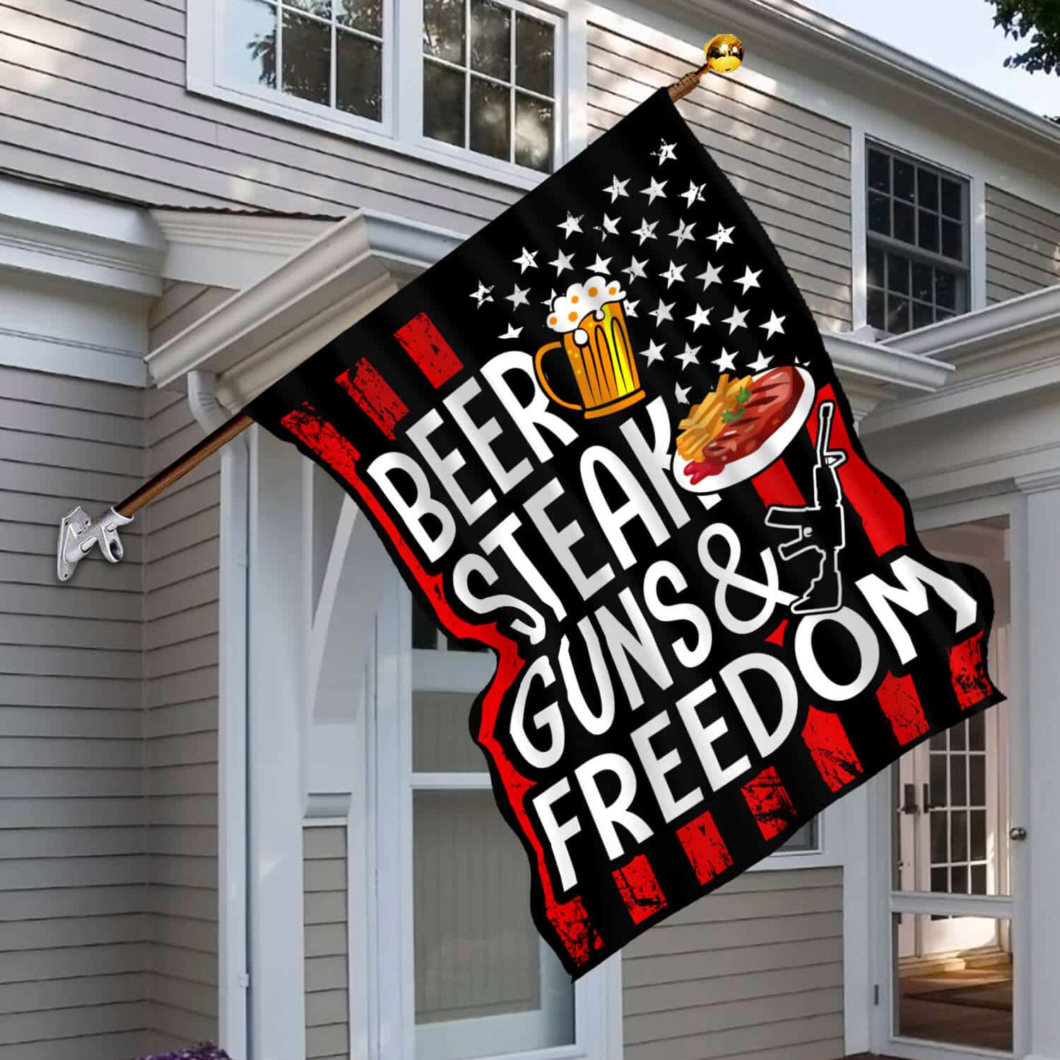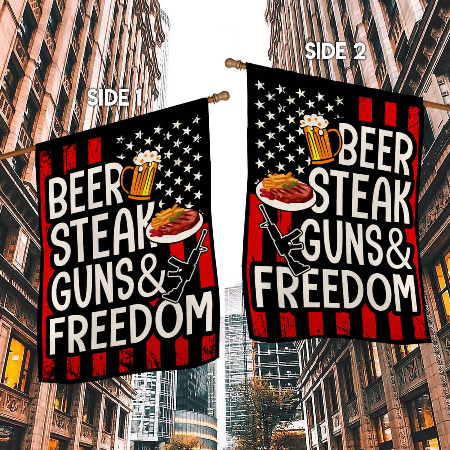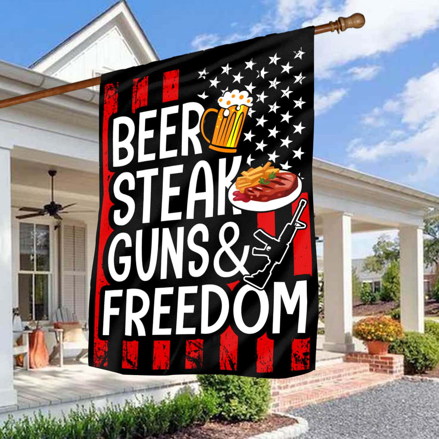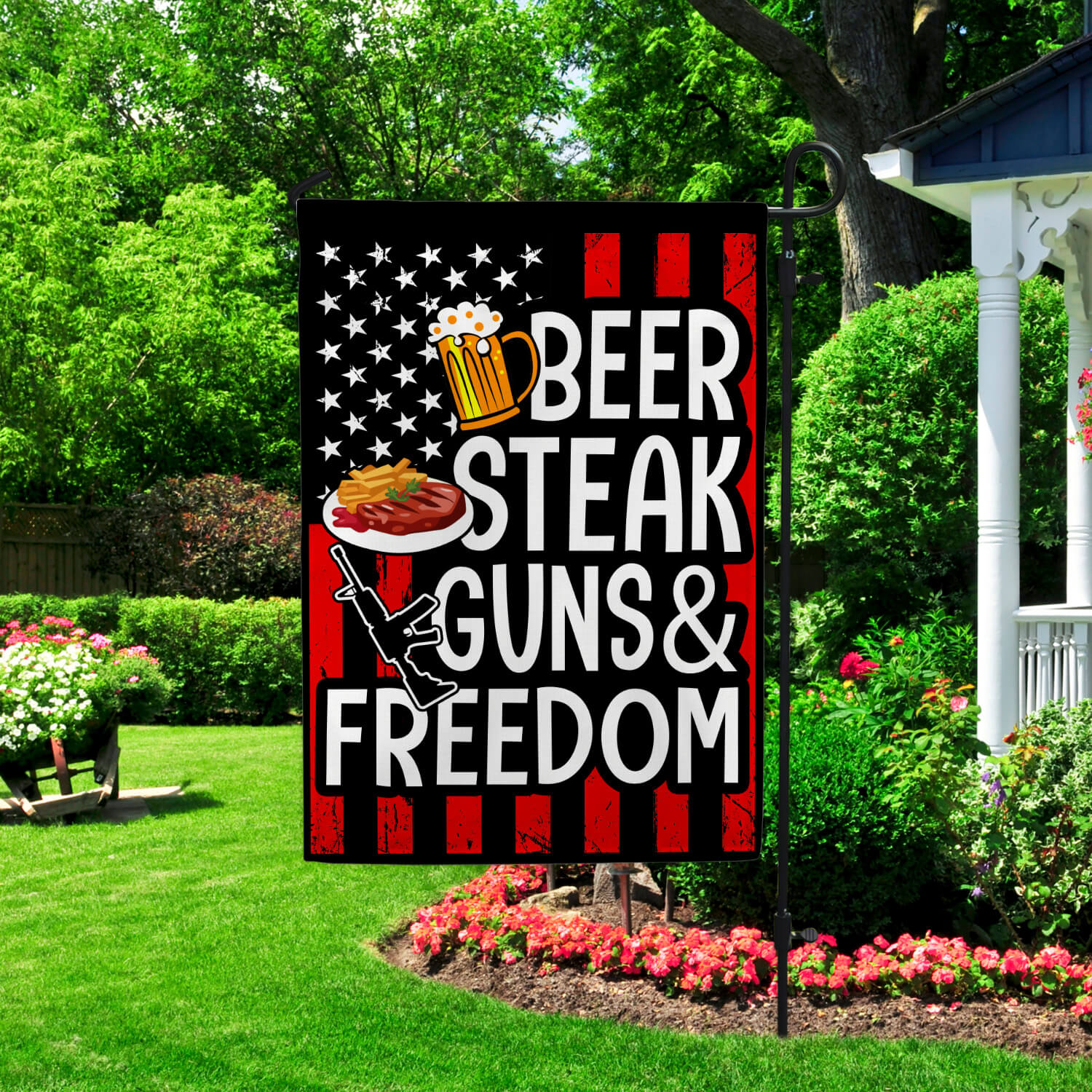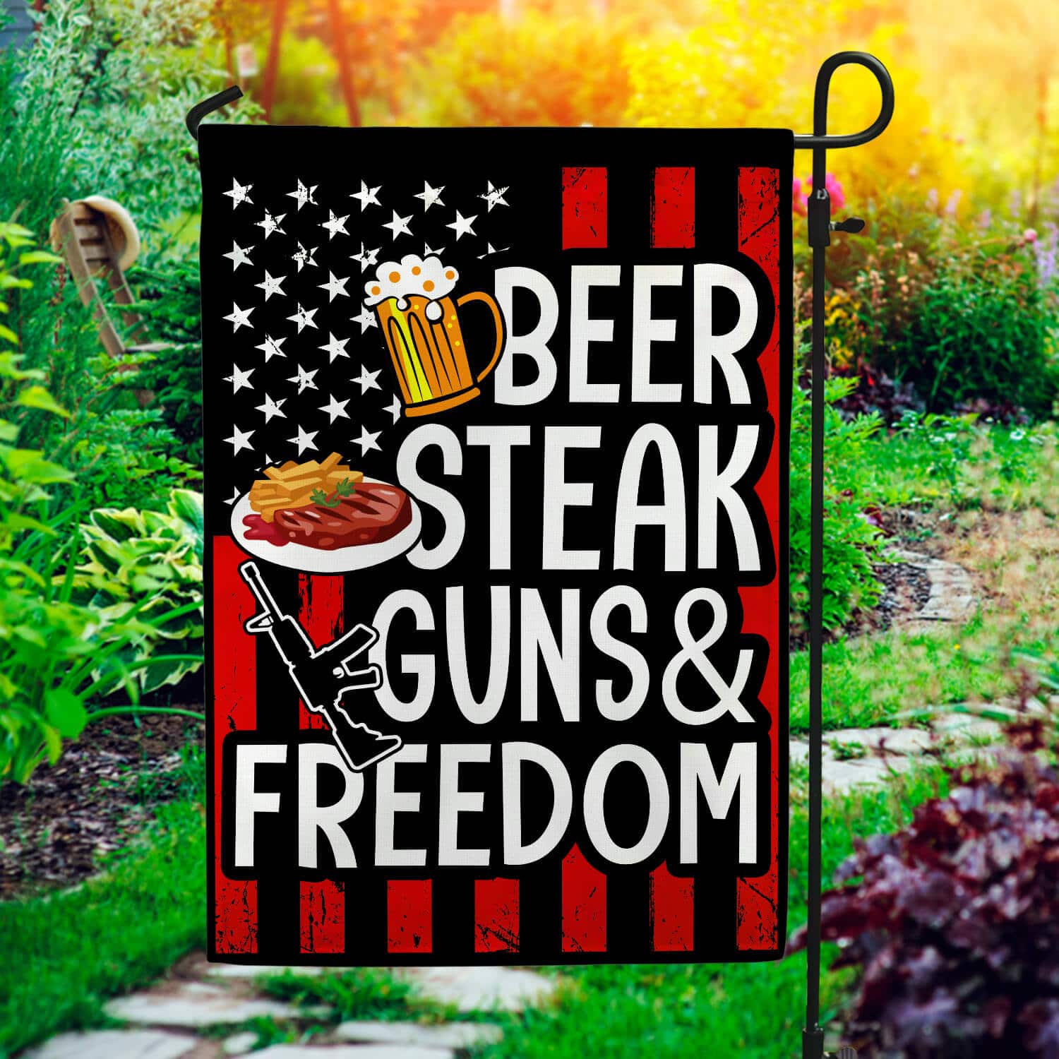 Let’s Shop Beer Steak Guns And Freedom Happy 4th Of July Military Garden Flag – House Flag – Wall Flag!