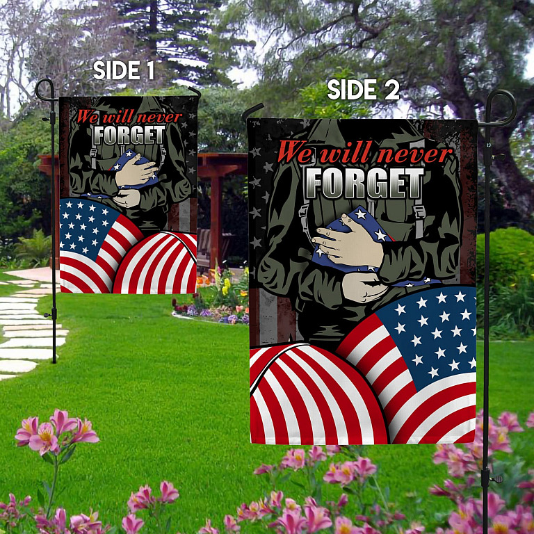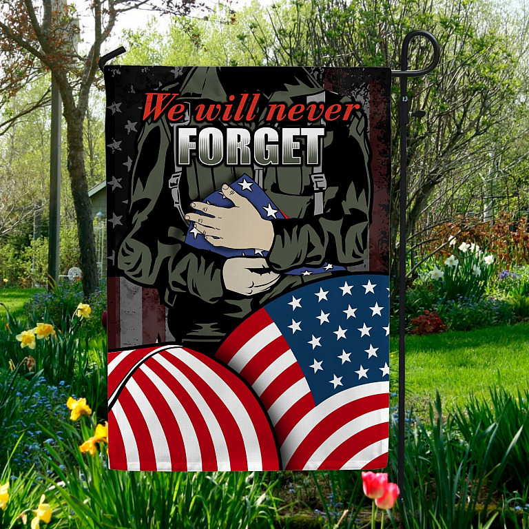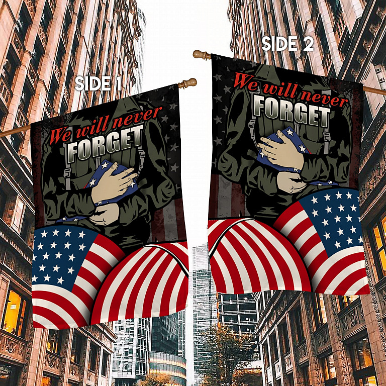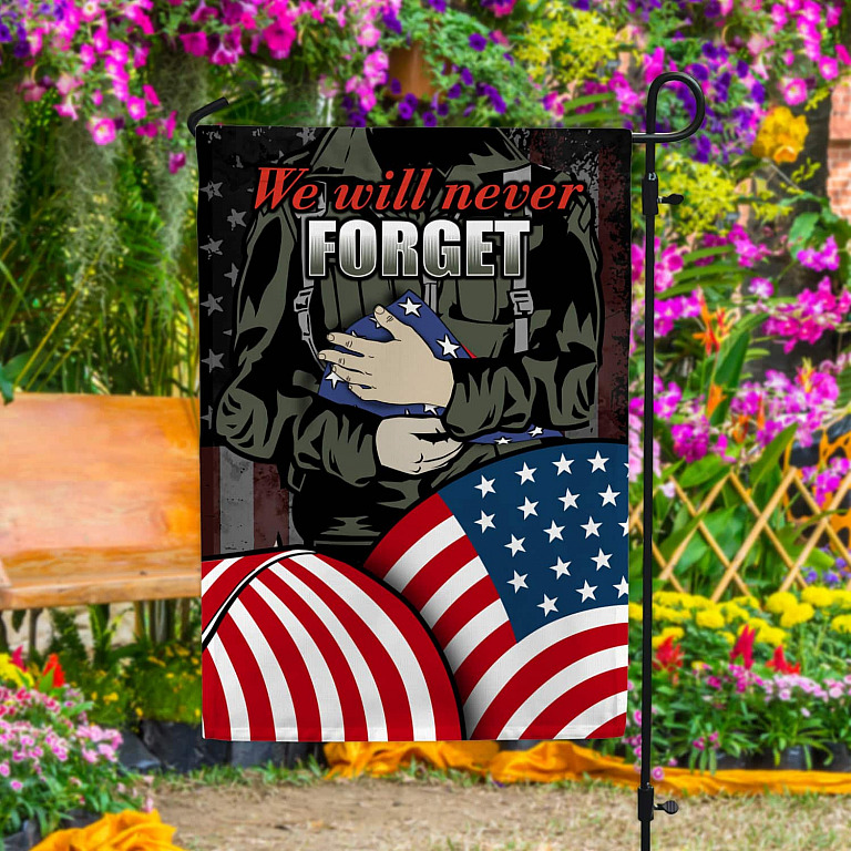 Let’s Shop We Will Never Forget Military Decorative Garden Flag – House Flag – Military Funeral Flag!