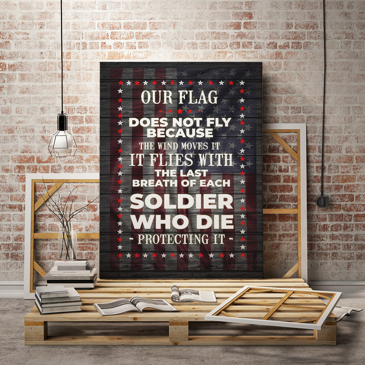 Let’s Shop Our Flag Flies With The Last Breath Of Each Soldier Who Die Protecting It Framed Canvas – Unframed Poster!