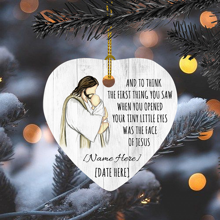 Let’s Shop Personalized Baby Miscarriage Ornament – First Thing You Saw The Face Of Jesus Stillborn Christmas Gift!