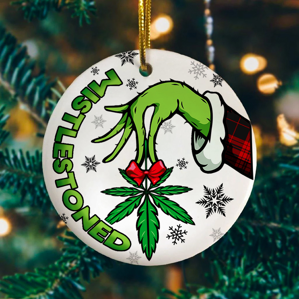 Let’s Shop Funny Mistlestoned 2020 Decorative Christmas Ornament – Funny Marijuana Leaf Holiday Flat Circle Ornament!