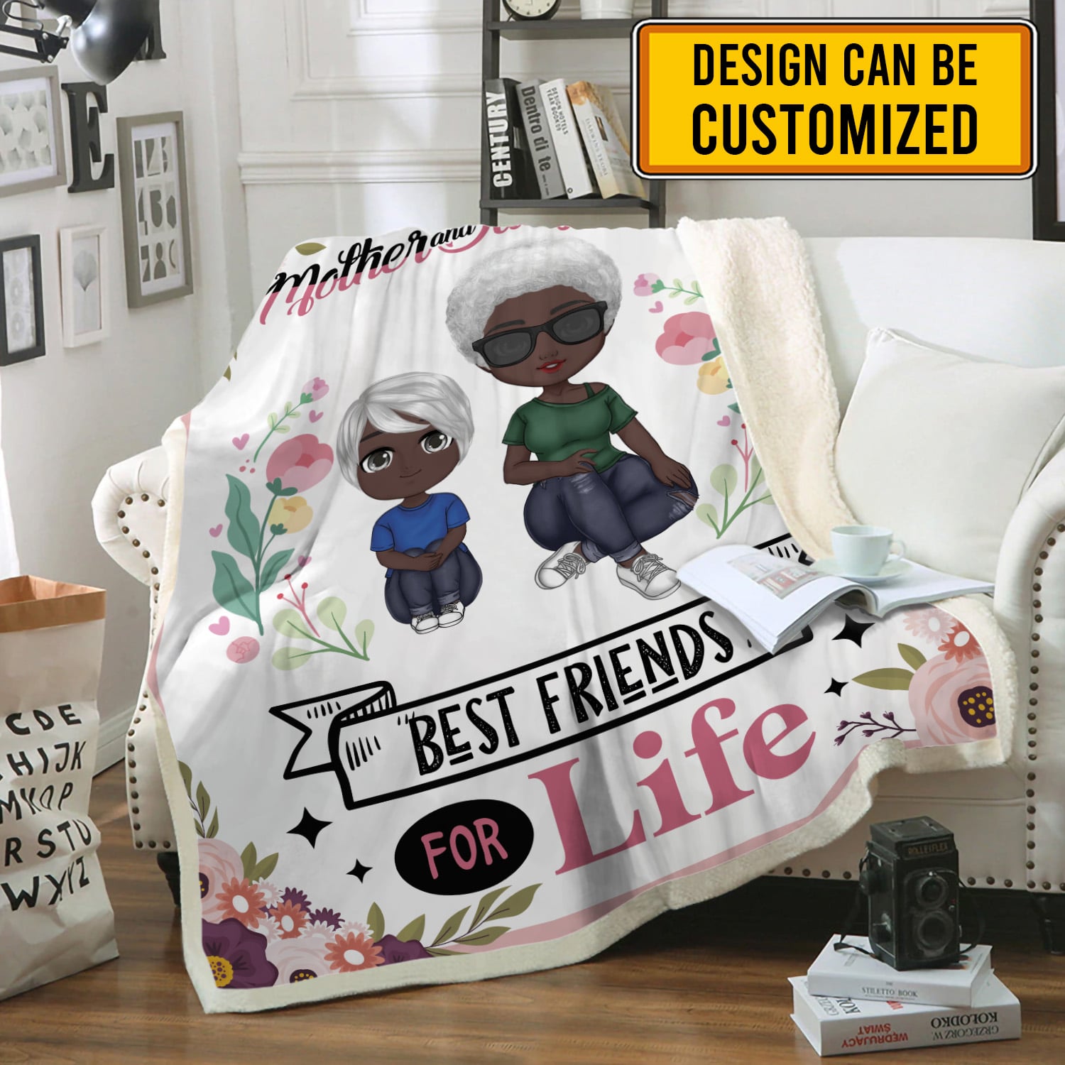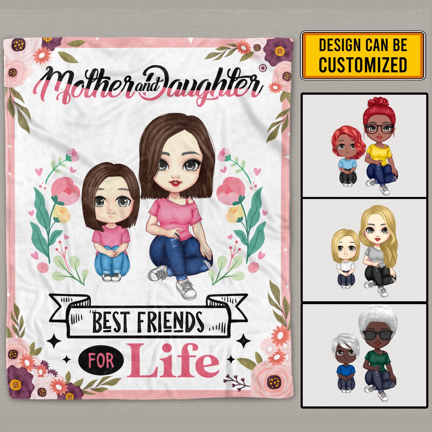 Let’s Shop Mother and Daughter Best Friends For Life Personalized Clipart Fleece Blanket – Mink Blanket – Mother’s Day Woven Blanket – Cute Gift For Mom!