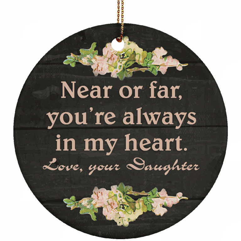 Shop Near Or Far You’re Always In My Heart Love Your Daughter Flat Circle Porcelain Ceramic Ornament Keepsake.