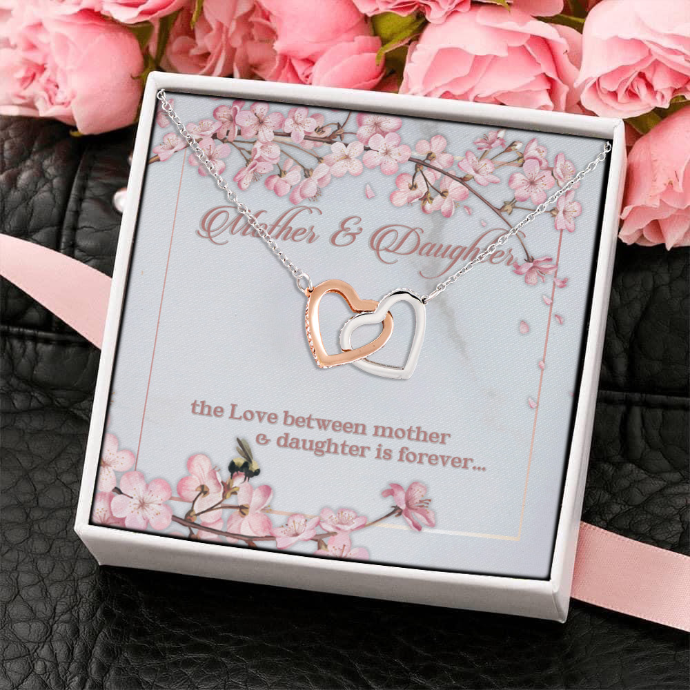 Let’s Shop Mother and Daughter the Love Between Mother and Daughter Is Forever Interlocking Hearts Pendant Necklace!