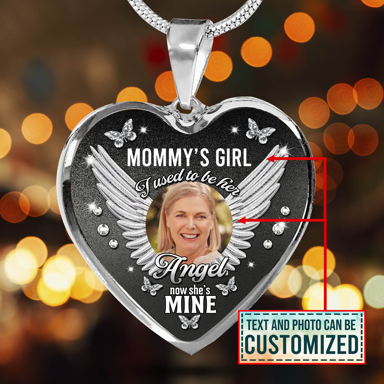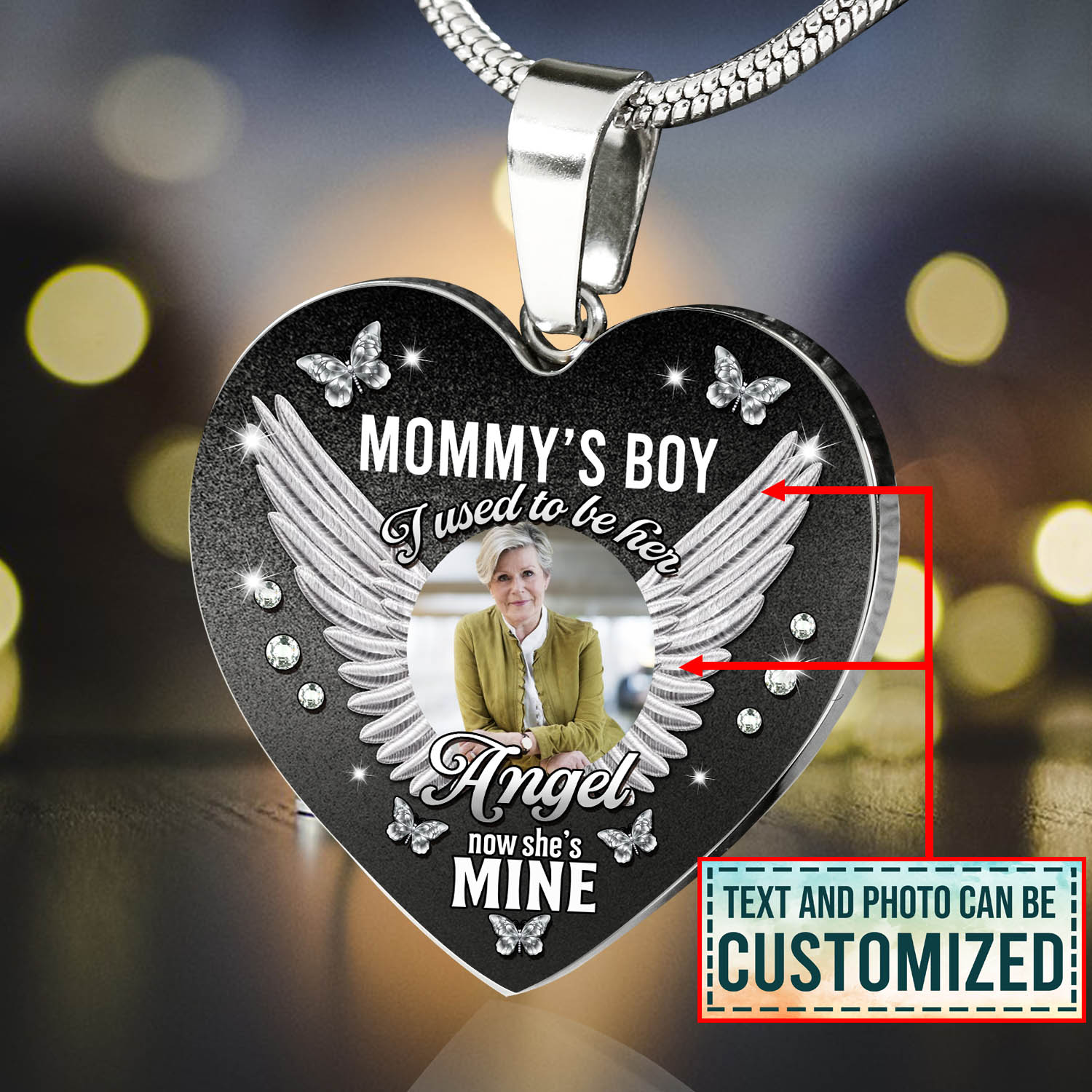 Let’s Shop Personalized Photo Mommy Boy’s I Used to Be Her Angel Now She Is Mine Memorial Heart Necklace – Bangle – Memorial Gifts!