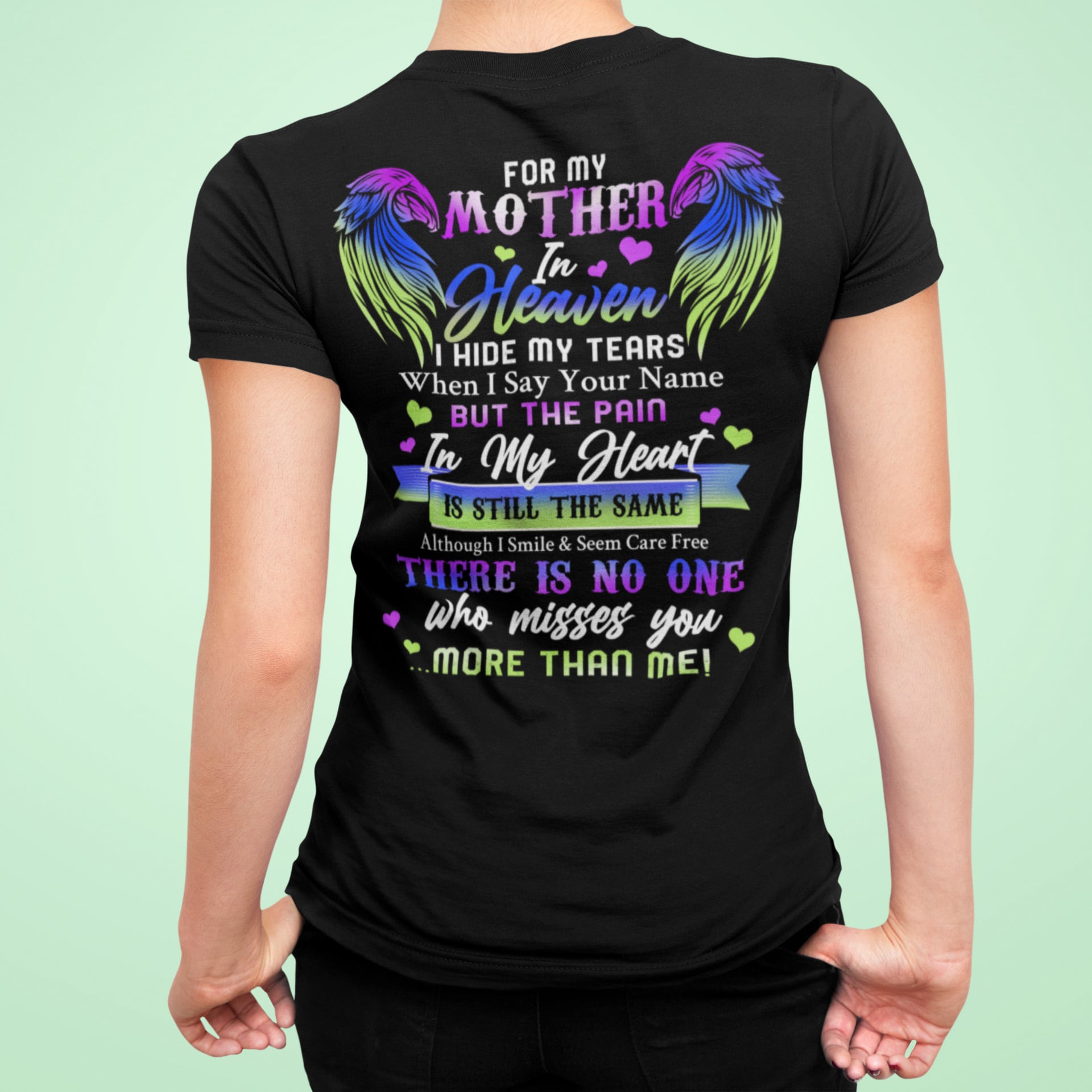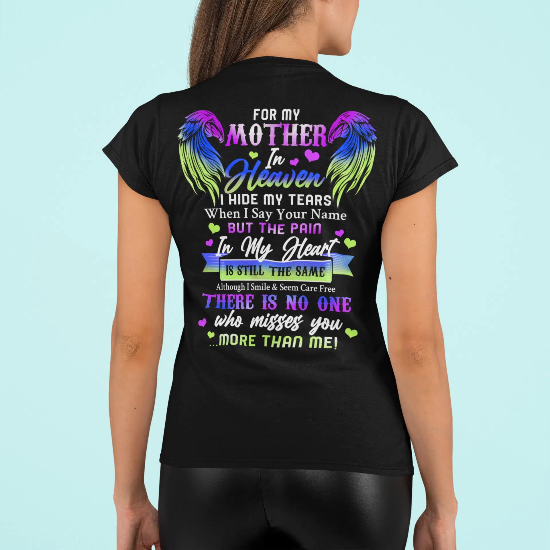 For My Mother In Heaven I Hide My Tears When I Say Your Name Mom Memorial Print On Back T-Shirt Only – V-Neck