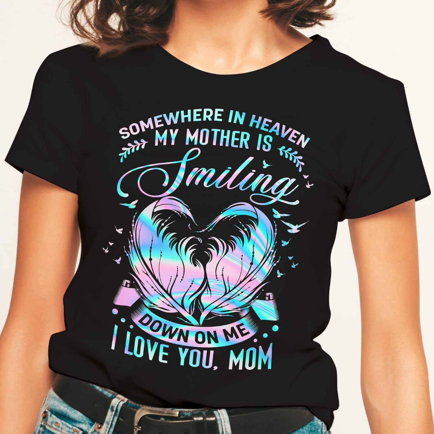 Somewhere In Heaven My Mother Is Smiling Down On Me I Love You Mom T-Shirt – Mom Memorial Shirt