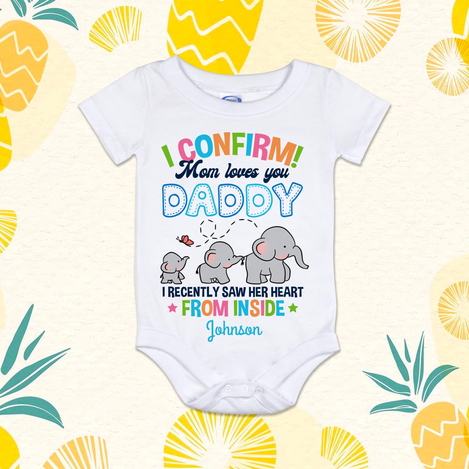 Let’s Shop Personalized Elephant I Confirm Mom Loves You Daddy I Recently Saw Her Heart Inside Baby Onesie-Baby Infant Bodysuit!