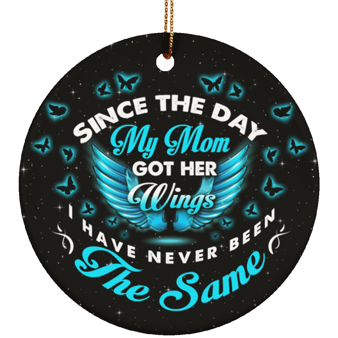 Since the Day My Mom Got Her Wings I Have Never Been The Same Memorial Flat Circle Porcelain Ceramic Ornament Keepsake