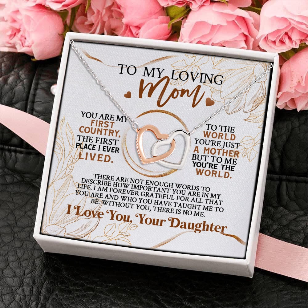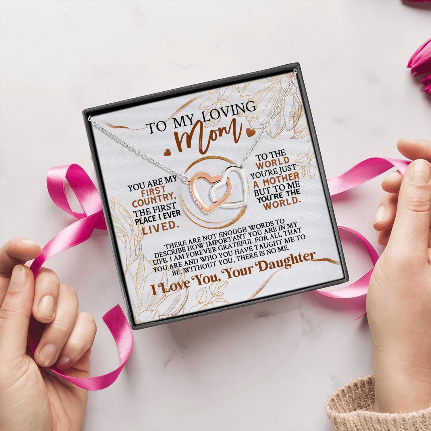 Let’s Shop Daughter To My Loving Mom You Are My First Country The First Place I Ever Lived Interlocking Hearts Pendant Necklace!