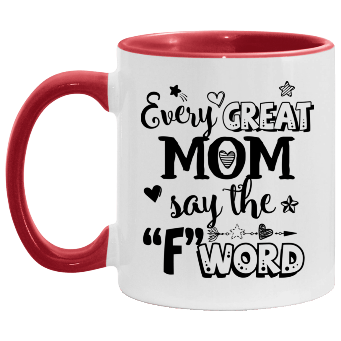 Every Great Mom Says The F Word Accent Mug - Cute Funny Coffee Mug for Mother's Day