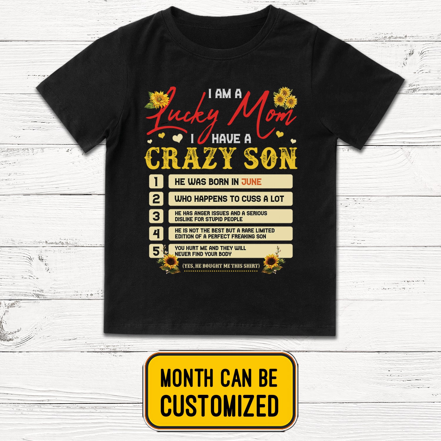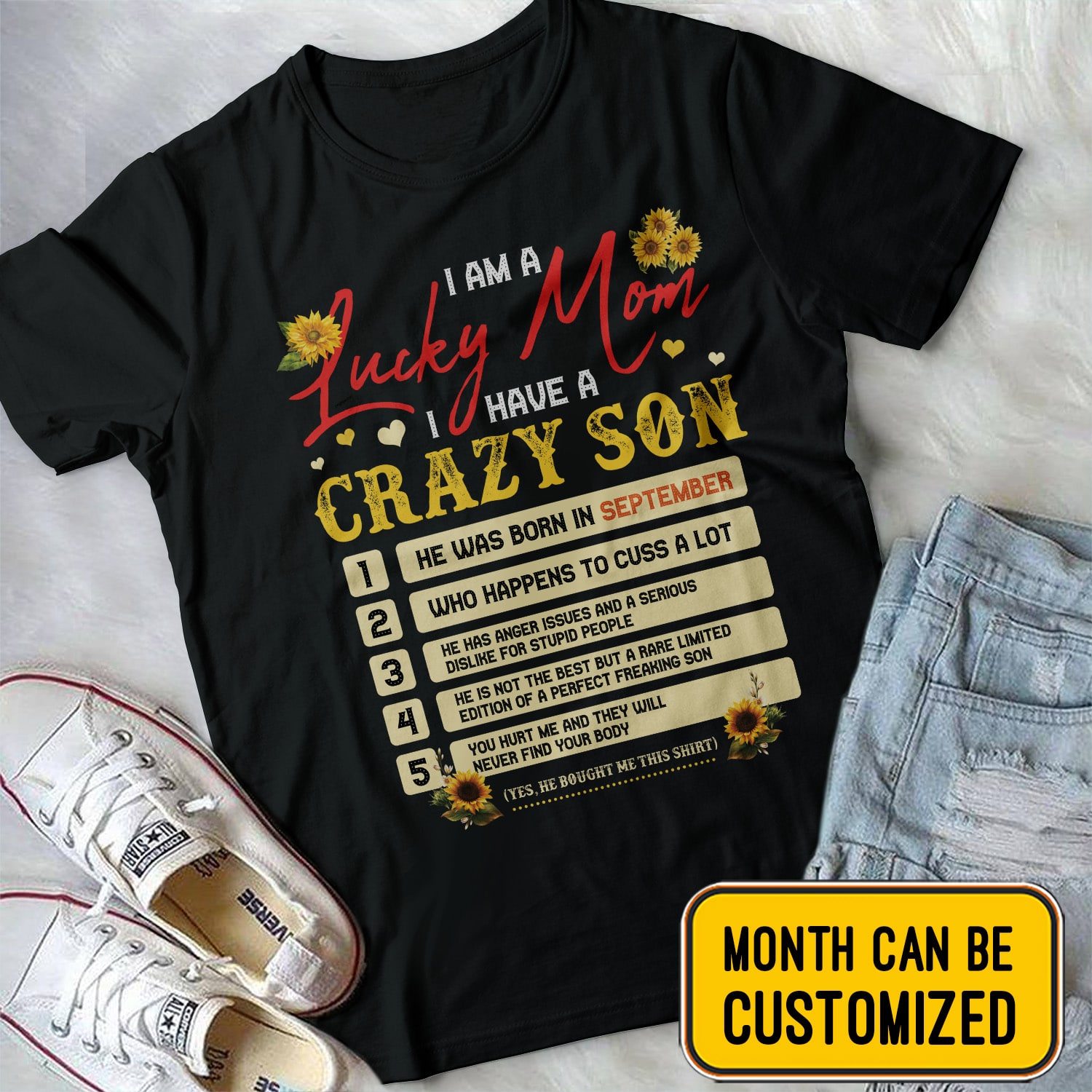 Personalized I Am A Lucky Mom I Have A Crazy Son Who Happens To Cuss A Lot Sunflower T-Shirt – V-Neck Tee