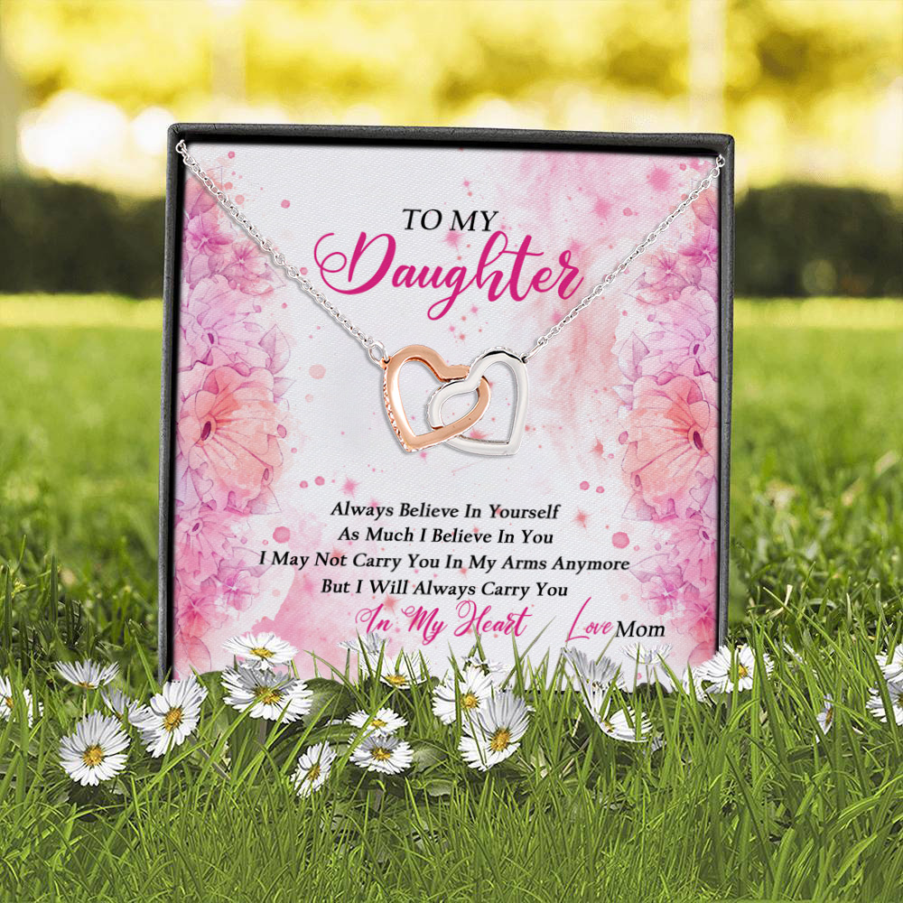 Let’s Shop Mom To My Daughter Always Believe In Yourself As Much I Believe In You Interlocking Hearts Pendant Necklace!