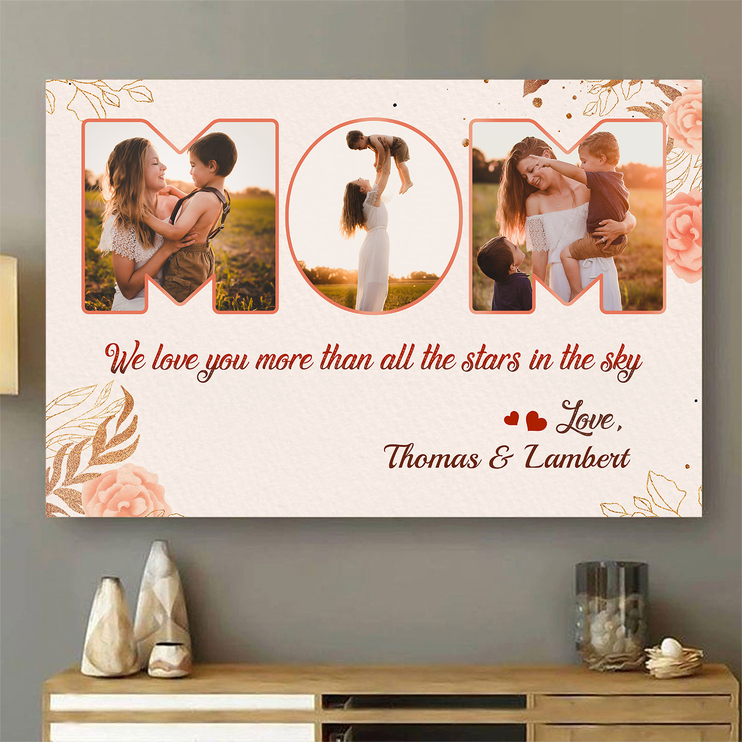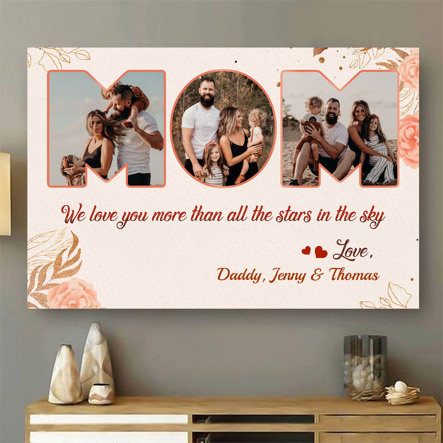 Let’s Shop Mom We Love You More than All the Stars in The Sky and All the Sand on The Beach Personalized Image Framed Canvas!