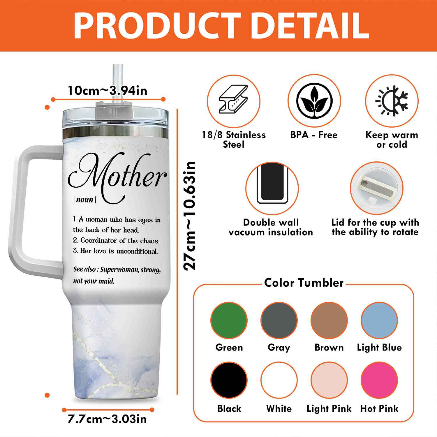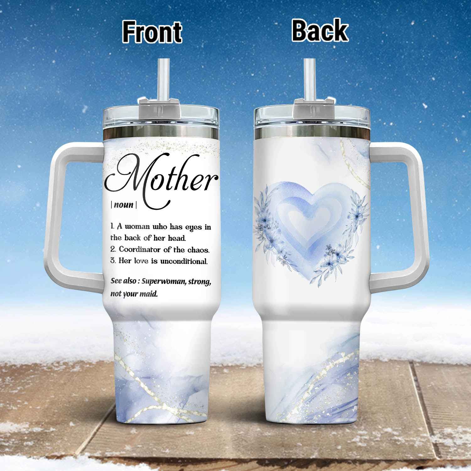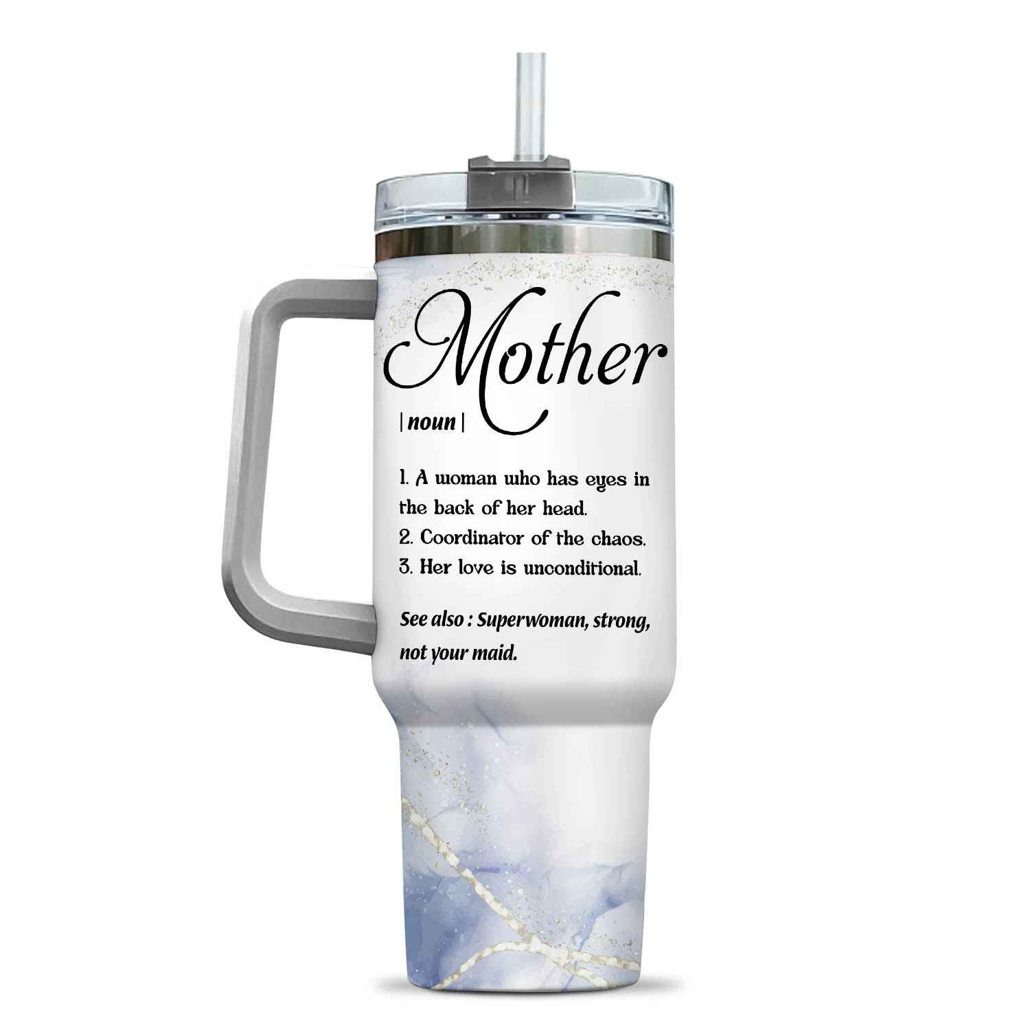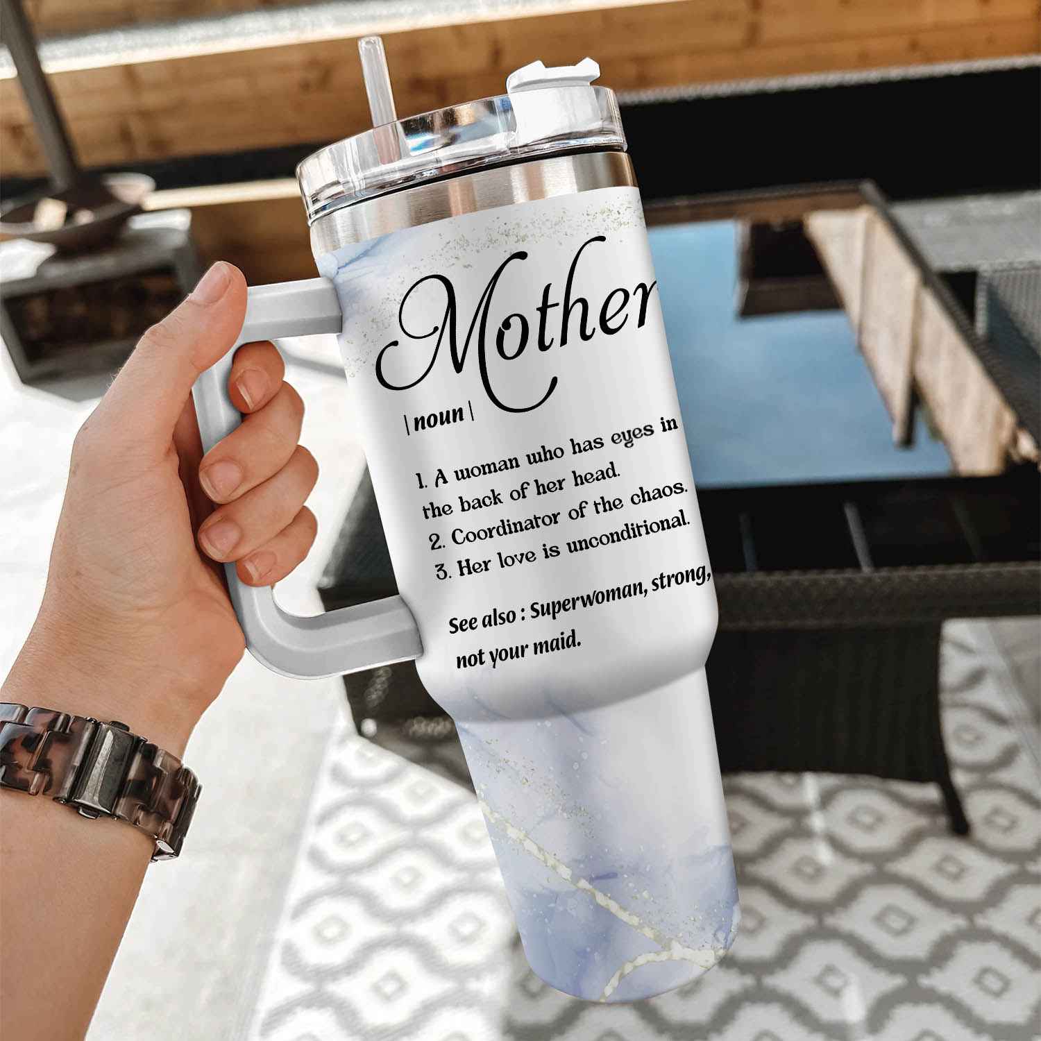 Let’s Shop Mother A Woman Who Has Eyes In The Back Of Her Head Insulated Tumbler Cup With Handle and Straw!