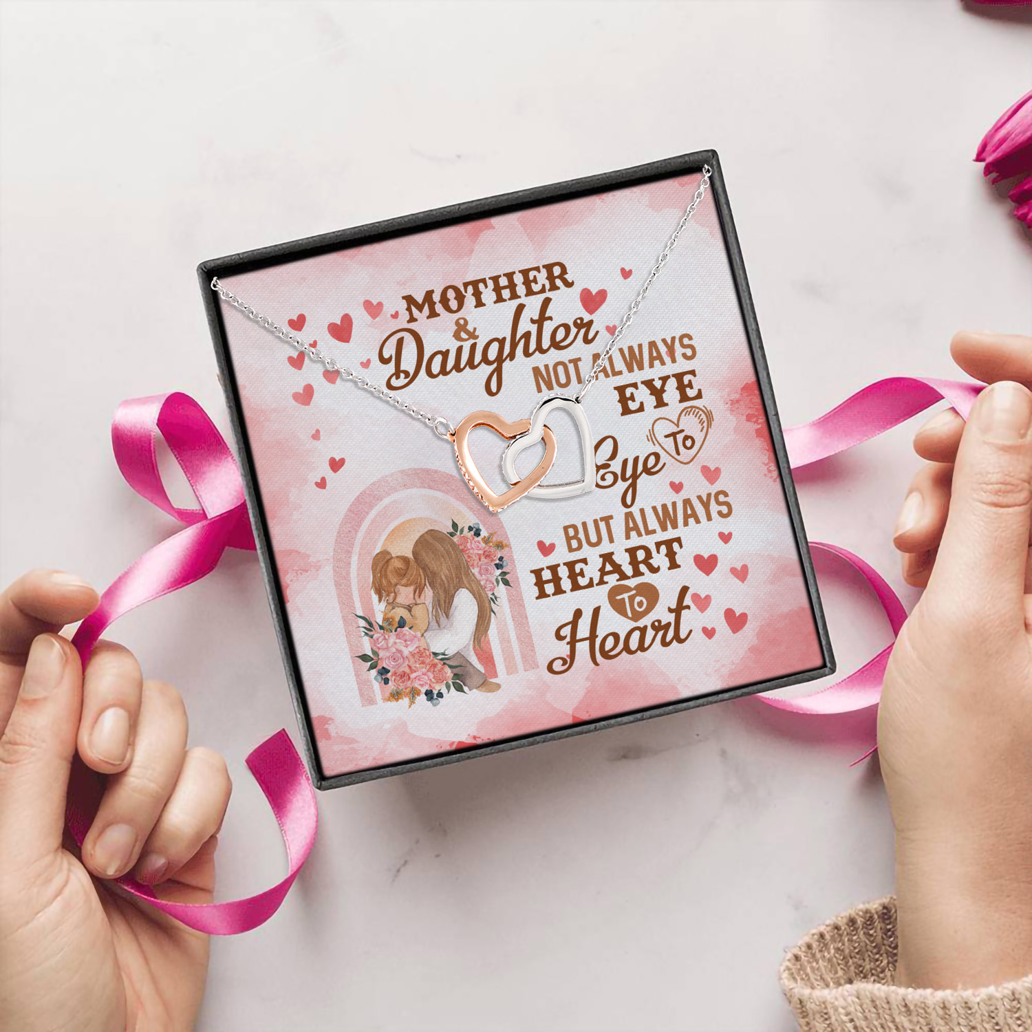 Let’s Shop Mother and Daughter Not Always Eye to Eye but Always Heart to Heart Interlocking Hearts Pendant Necklace!