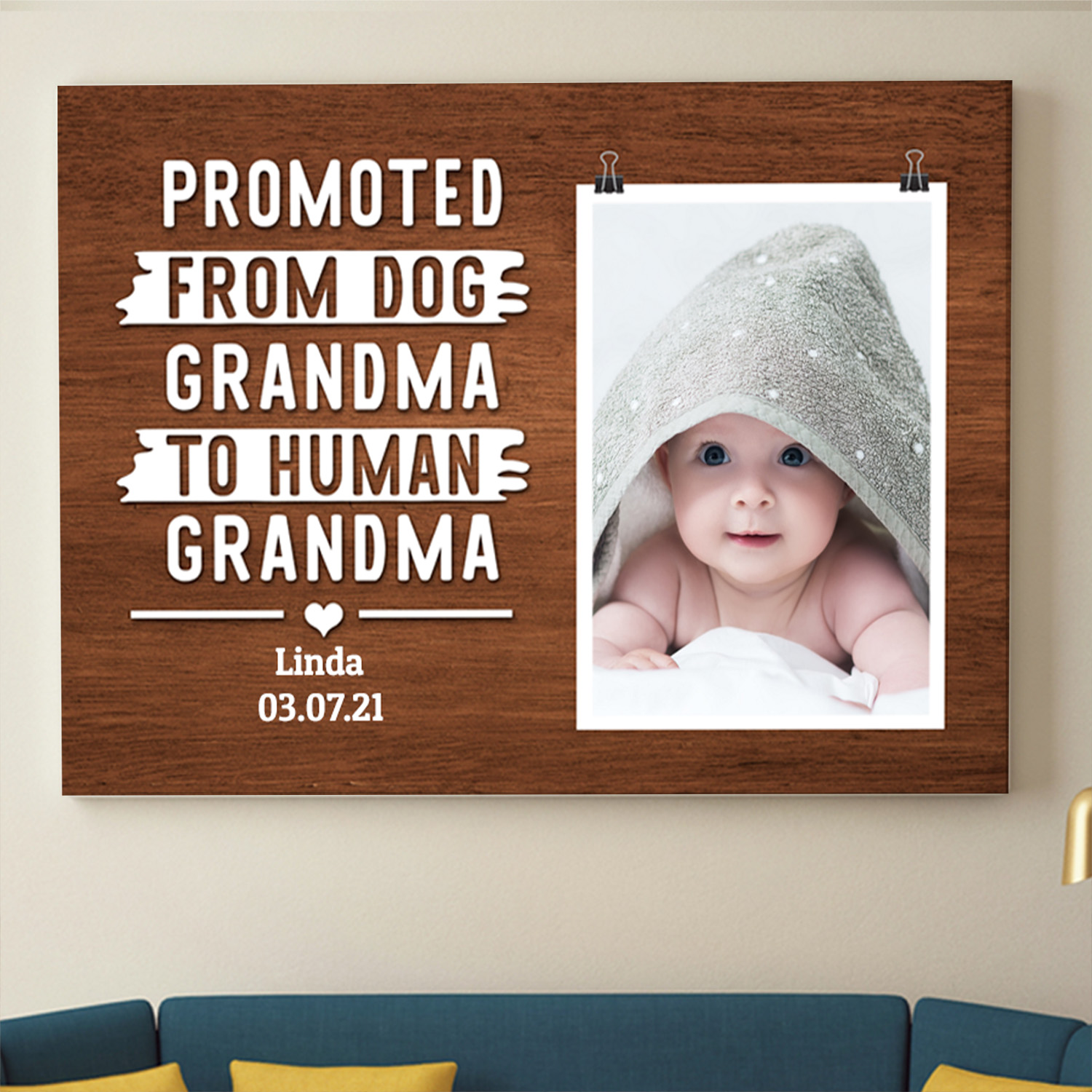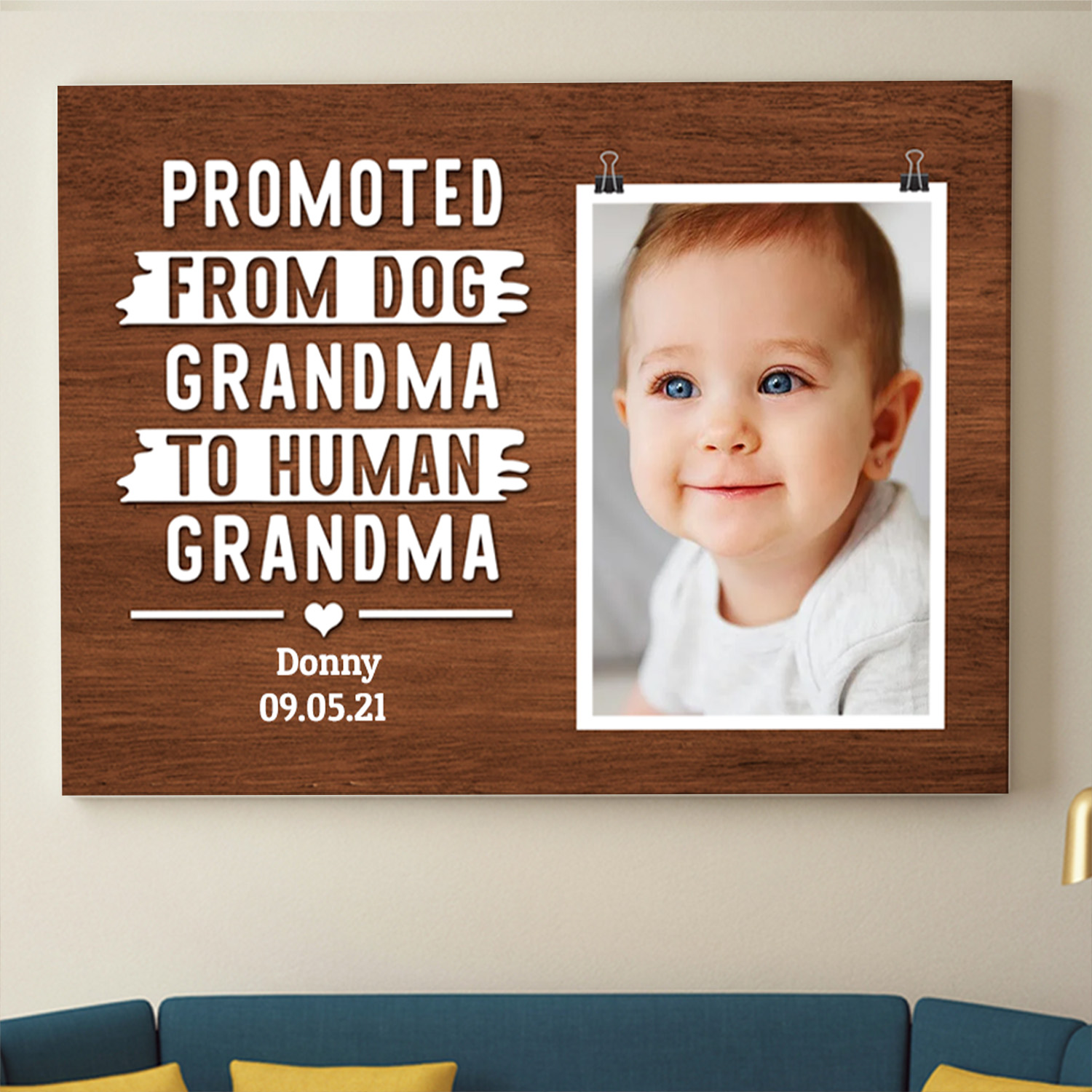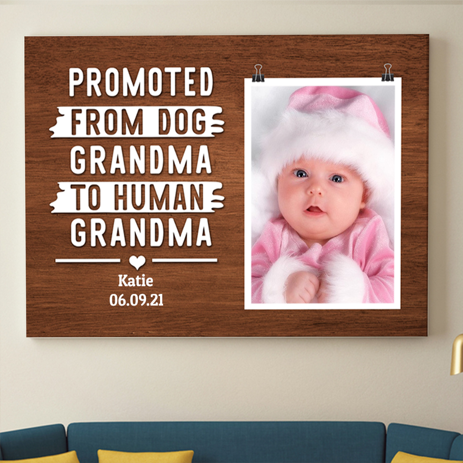 Let’s Shop Custom Photo Promoted From Dog Grandma To Human Grandma Framed Canvas – Unframed Poster!