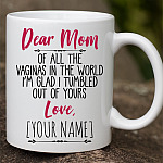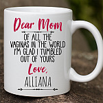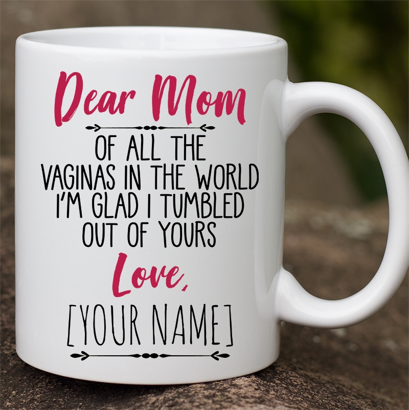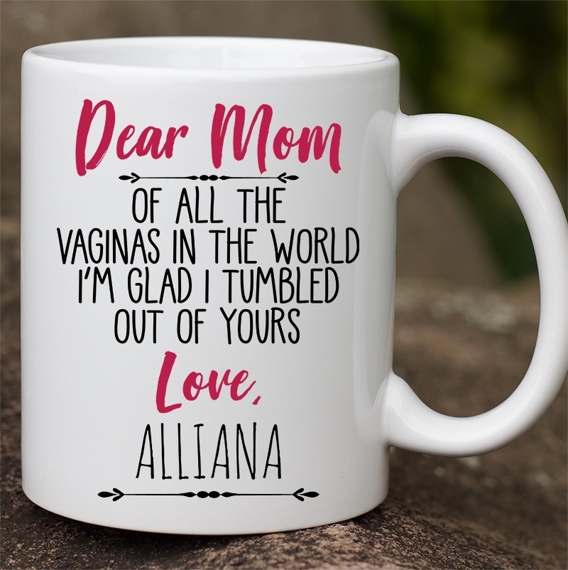 Shop Dear Mom Of All The Vaginas In The World I Tumbled Out Of Yours Love Personalized Name Accent Mug.