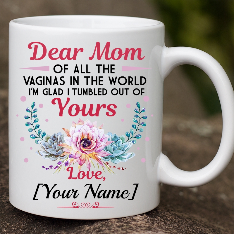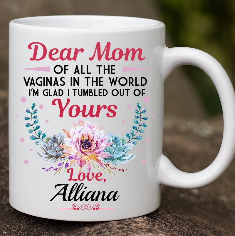 Personalized Name Dear Mom Of All The Vaginas In The World I Tumbled Out Of Yours Accent Mug