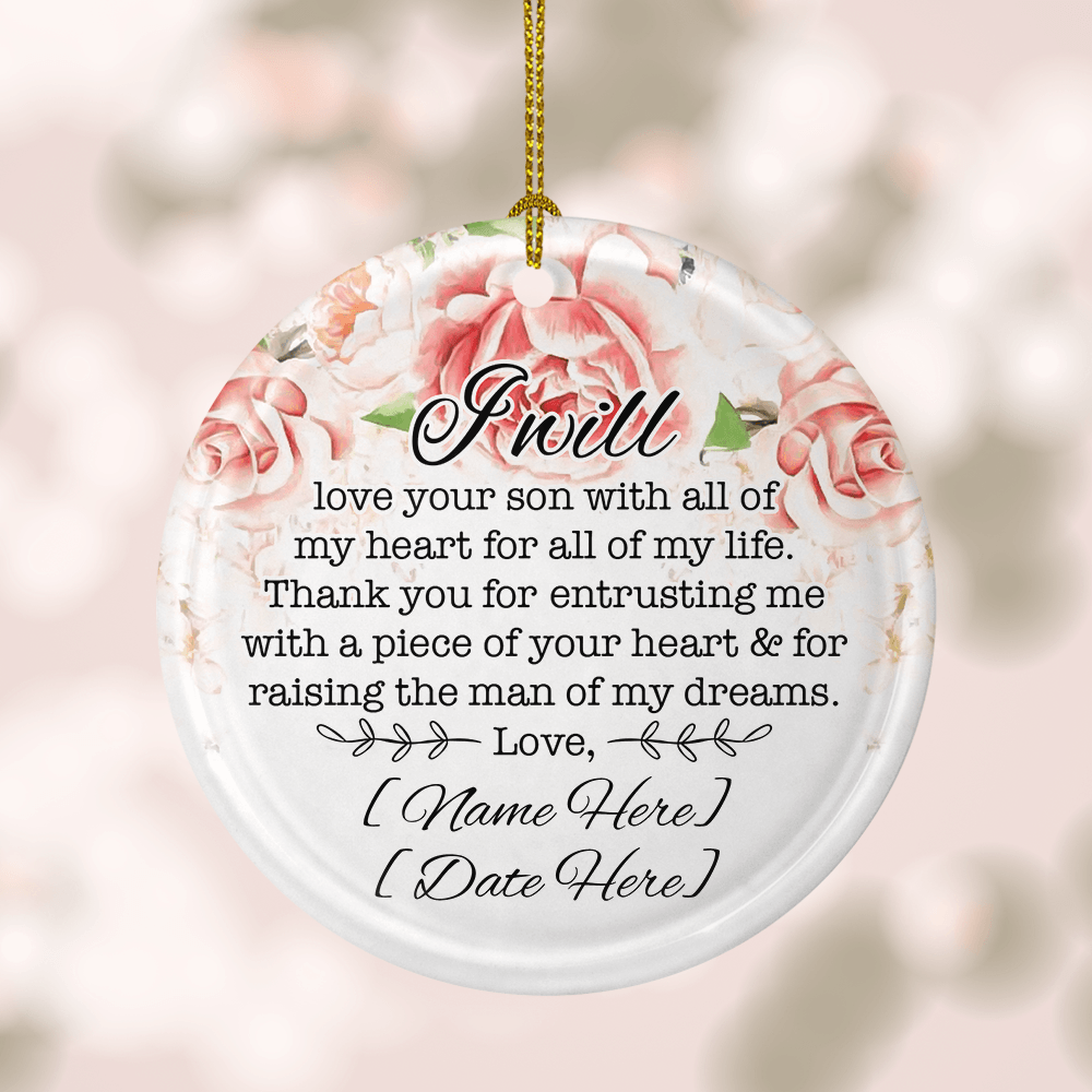 Shop I Will Love Your Son With All Of My Heart Personalized Ornament Keepsake – Porcelain Ceramic – Gift for Mother In Law.