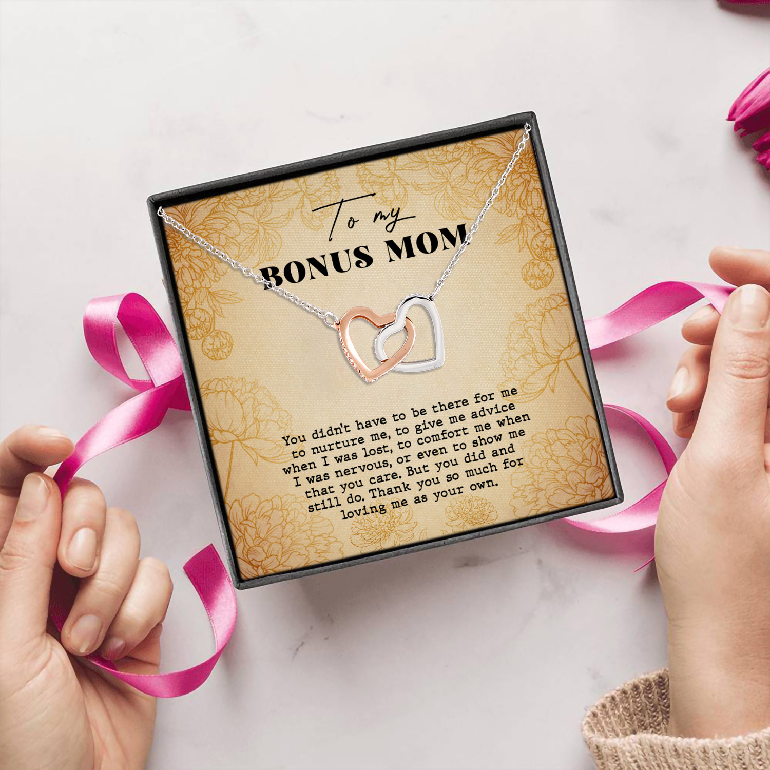 Let’s Shop To My Bonus Mom Thank You so Much for Loving Me as Your Own Interlocking Hearts Pendant Necklace!
