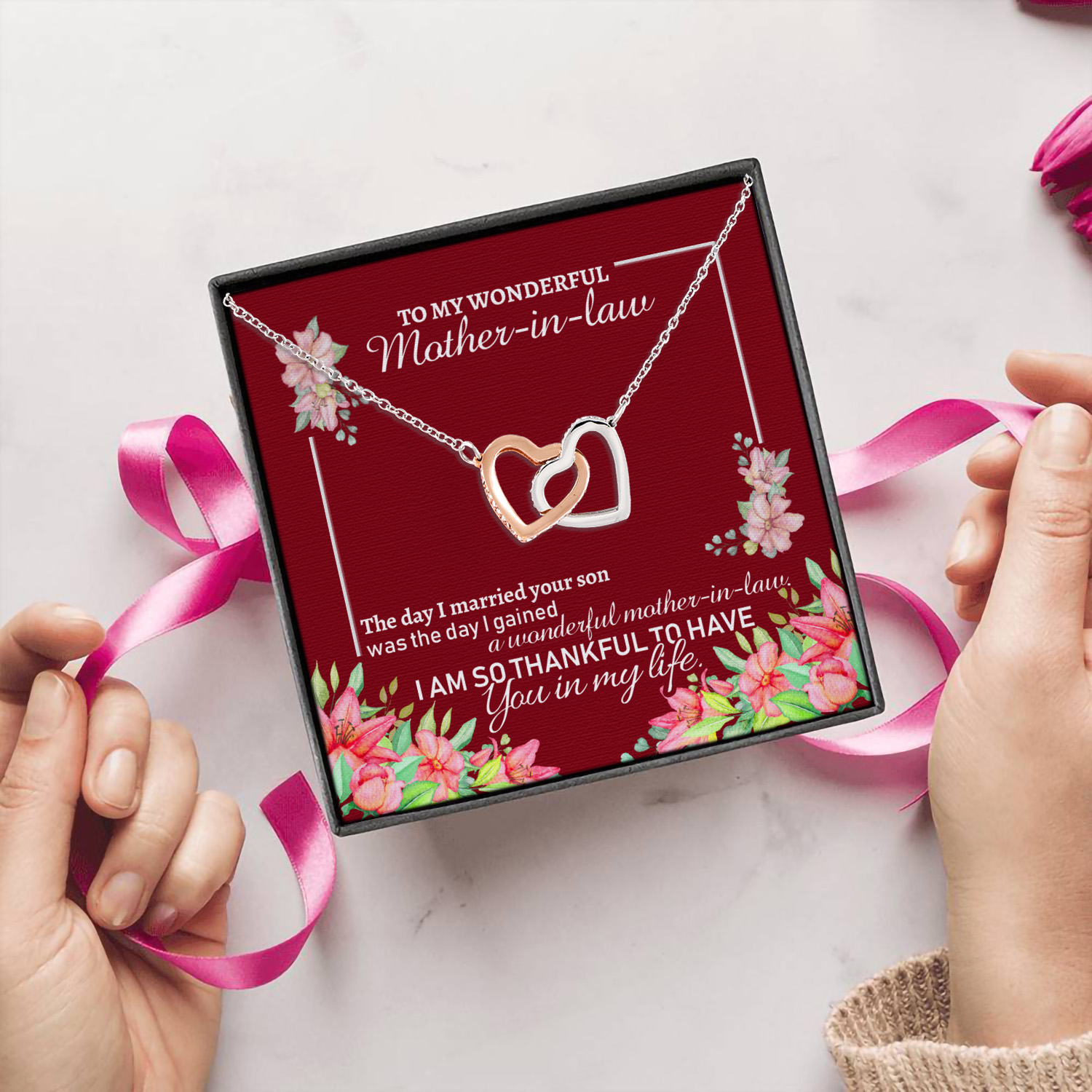 Let’s Shop To My Wonderful Mother In Law Wedding Gift For Mother Of Groom Interlocking Hearts Pendant Necklace!