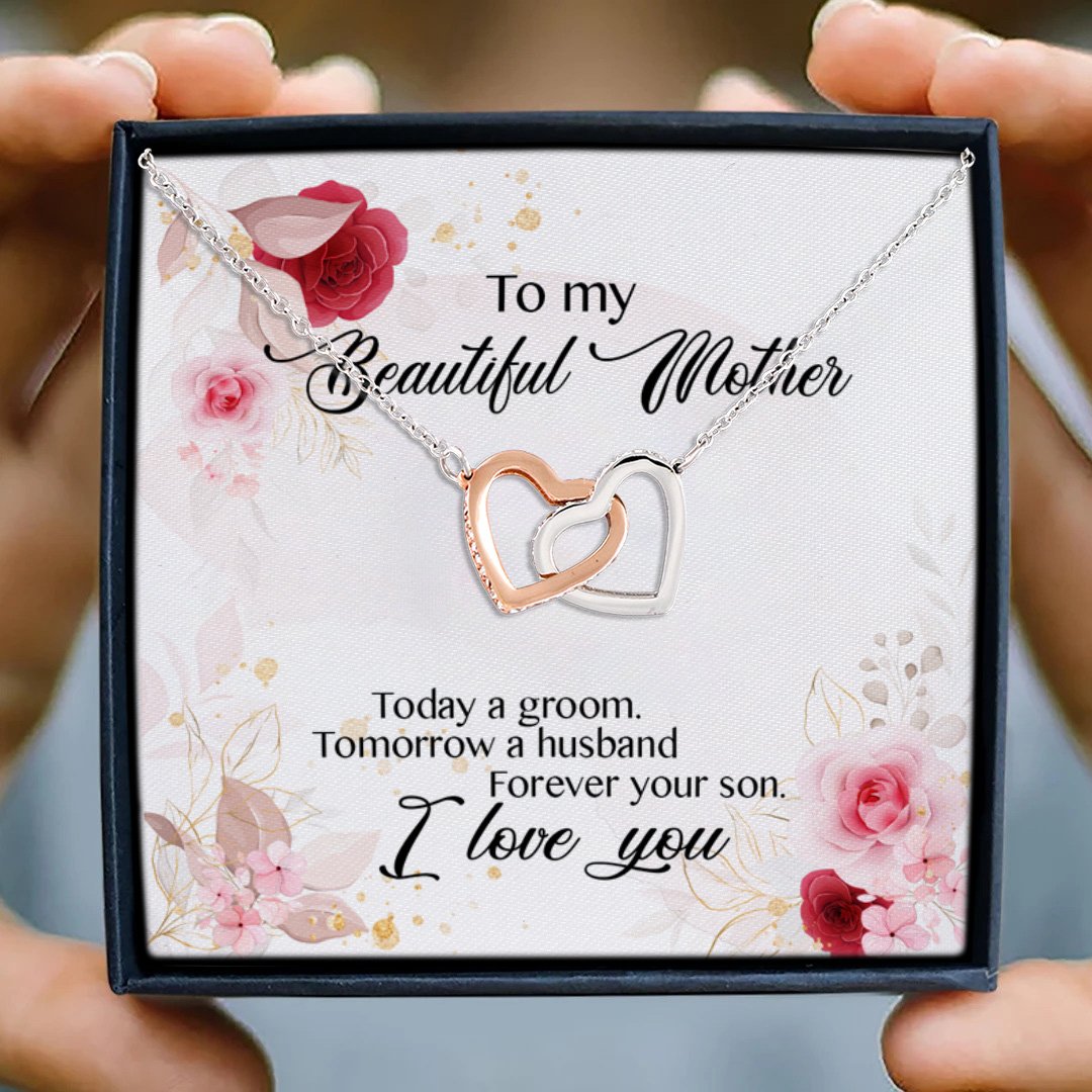 Let’s Shop To My Beautiful Mother Forever Your Son Interlocking Hearts Pendant Necklace!