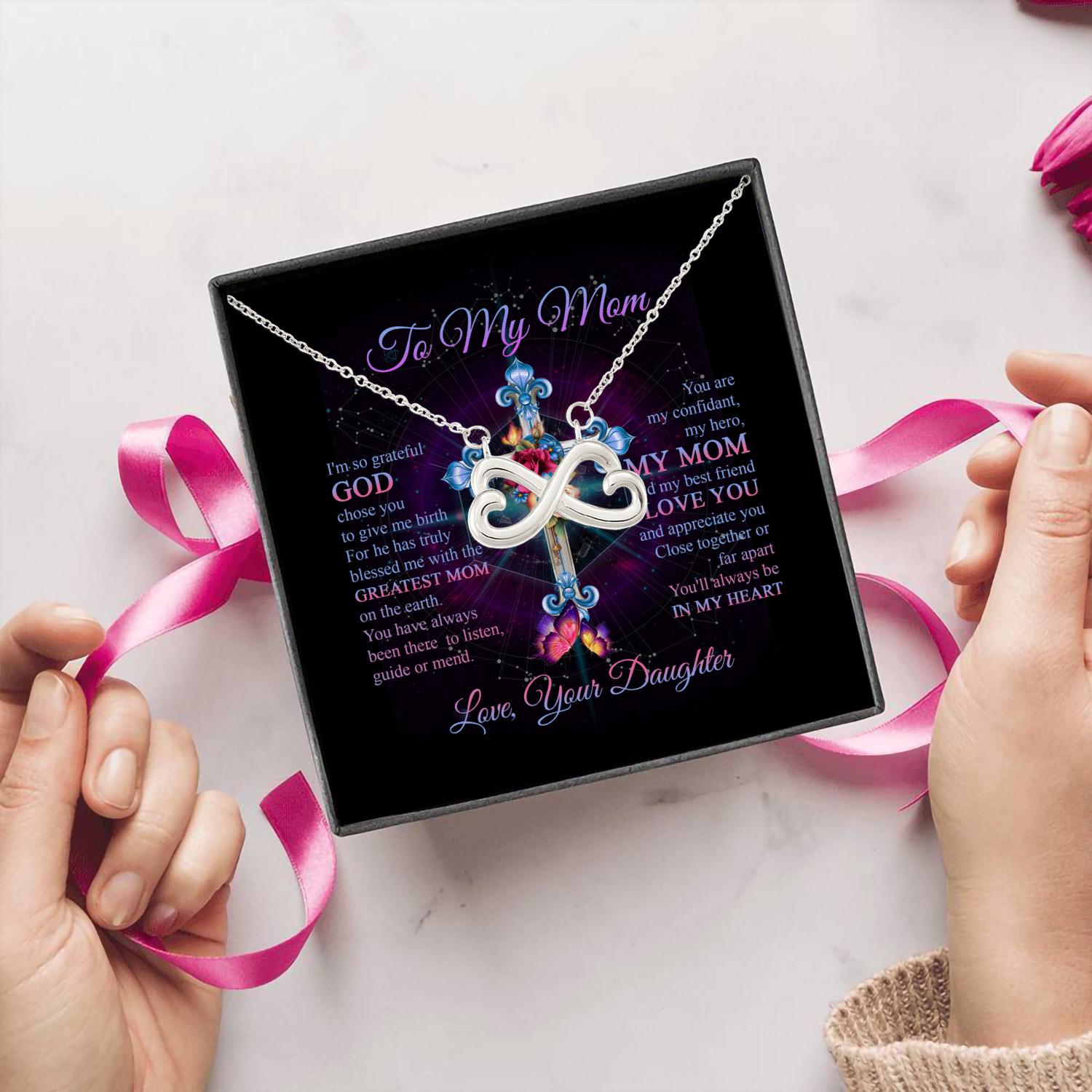 Let’s Shop Daughter to My Mom I’m so Grateful God Chose You to Give Me Birth Mothers Day Infinity Heart Pendant Necklace!