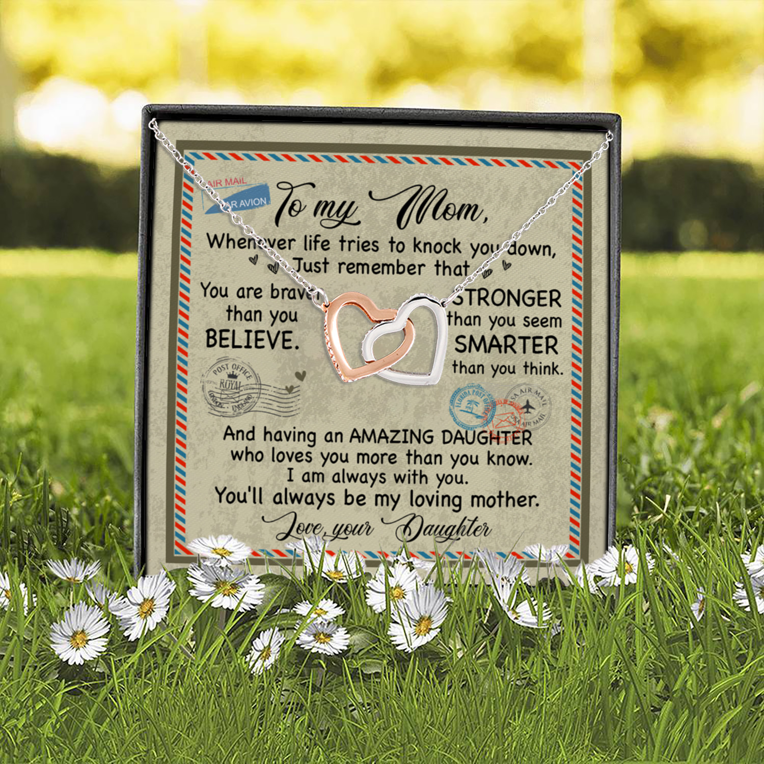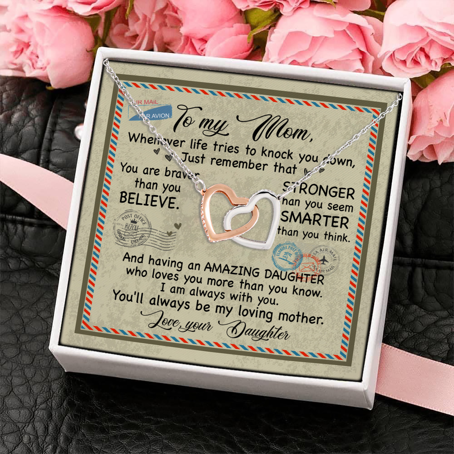 Let’s Shop Daughter to My Mom Whenever Life Tries to Knock You Down Just Remember Interlocking Hearts Pendant Necklace!