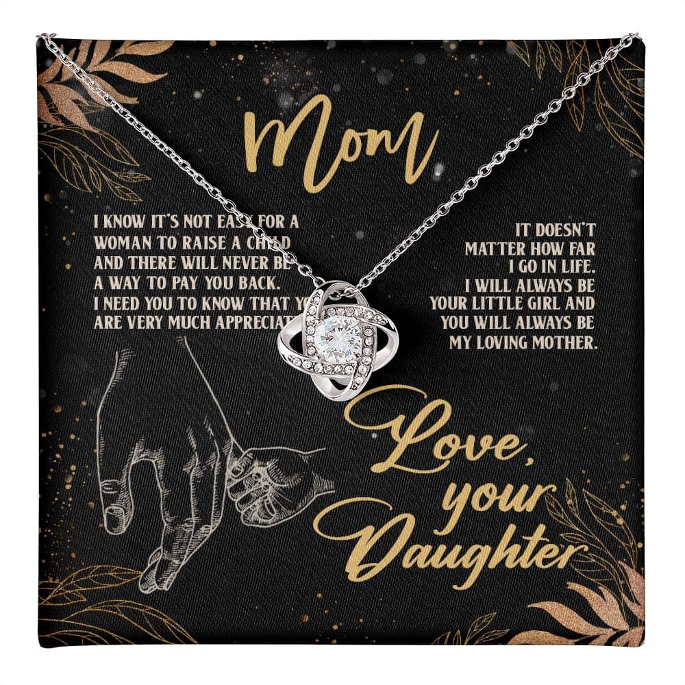 Let’s Shop Mom I Know It’s Not Easy for A Woman to Raise a Child Message Card Pendant Necklace – Love Knot Alluring Necklace for Mom!