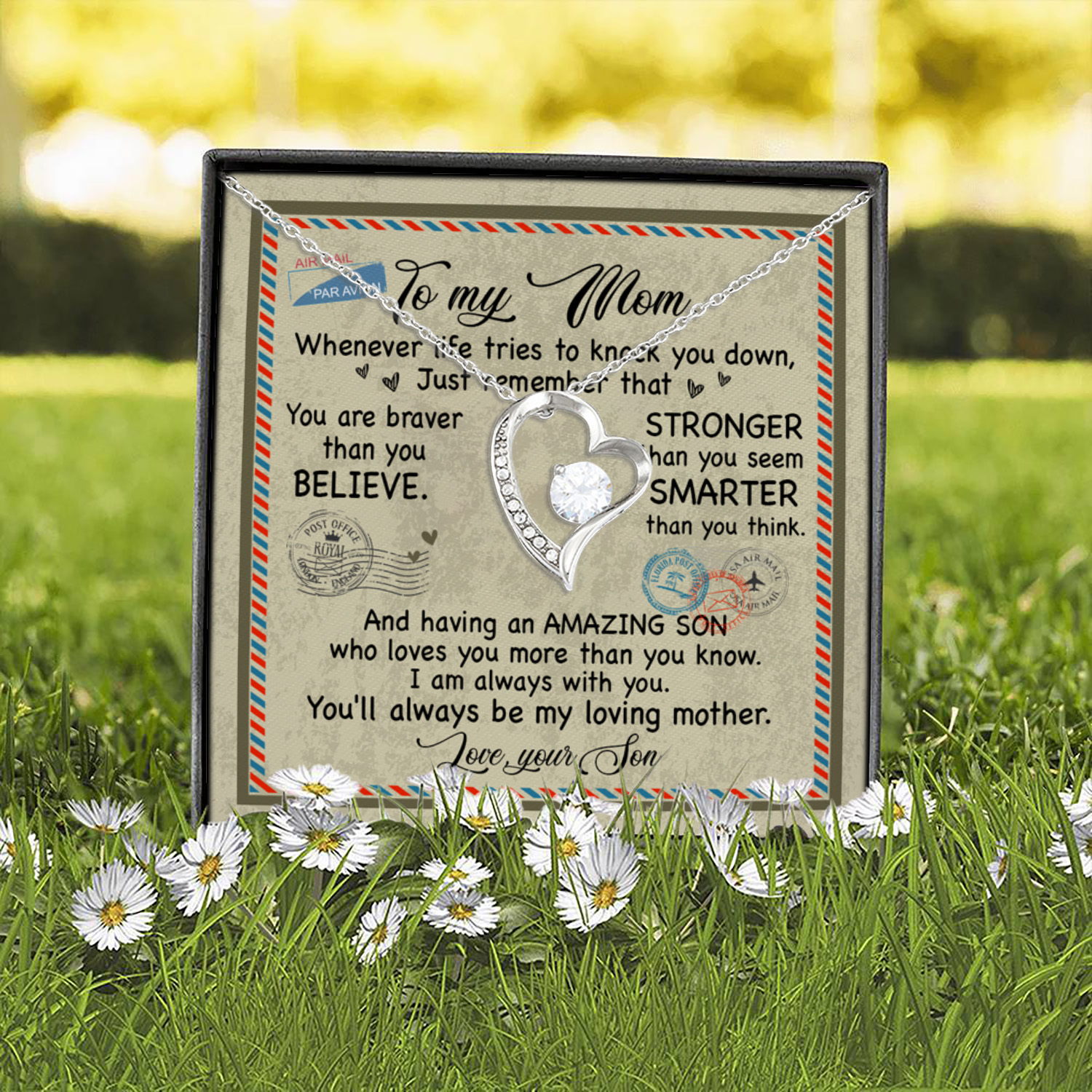 Let’s Shop Son to My Mom Whenever Life Tries to Knock You Down Just Remember Letter Forever Love Pendant Necklace!