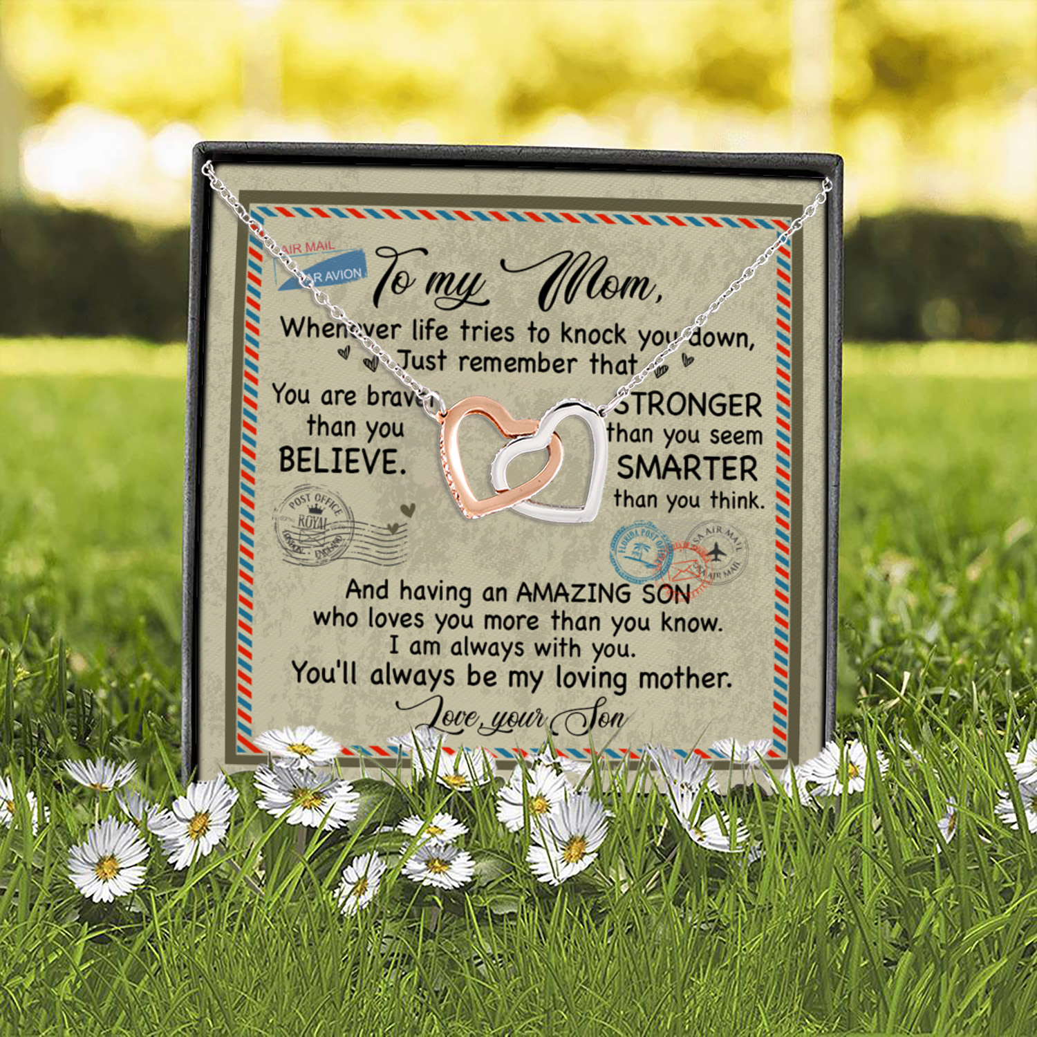 Let’s Shop Son to My Mom Whenever Life Tries to Knock You Down Just Remember Letter Interlocking Hearts Pendant Necklace!