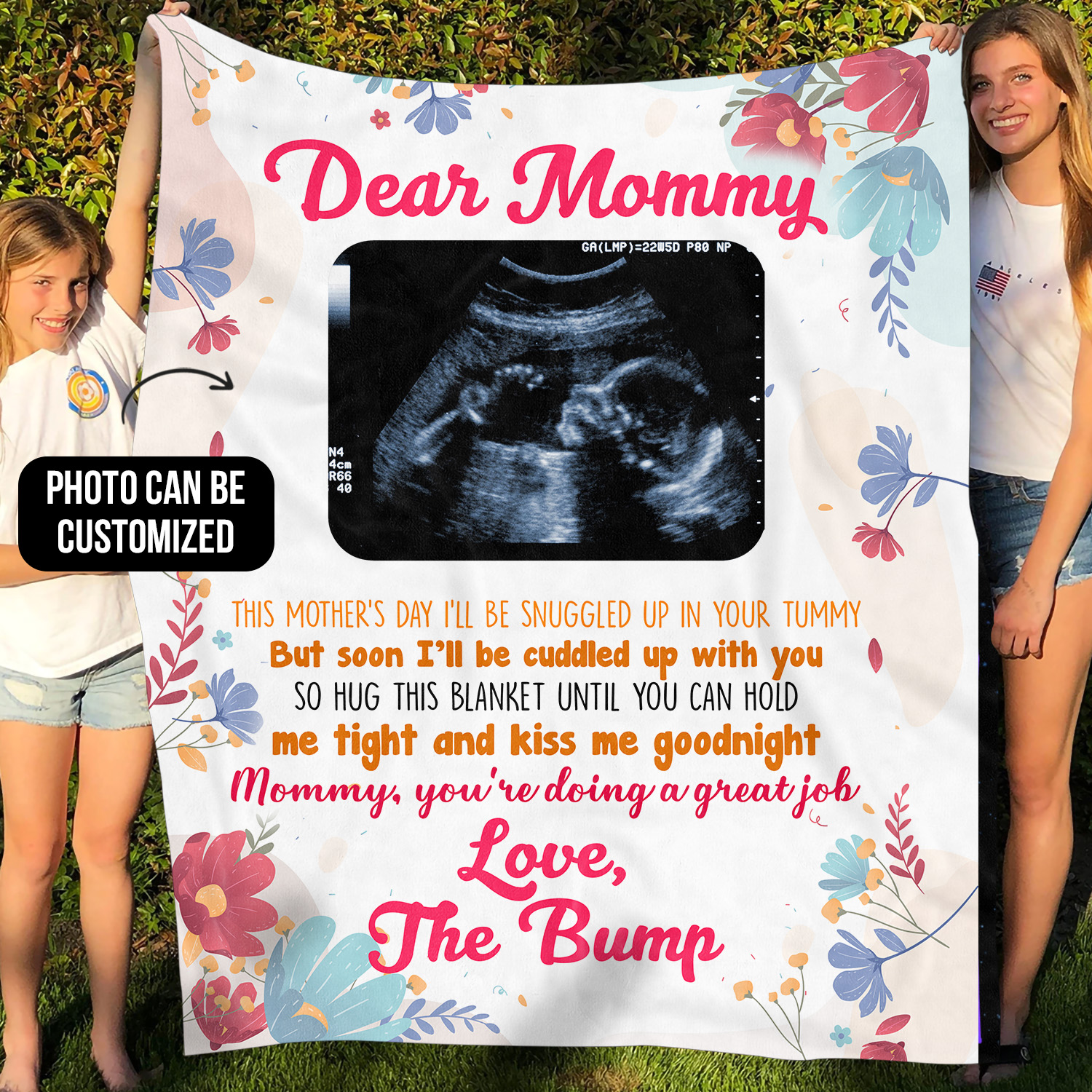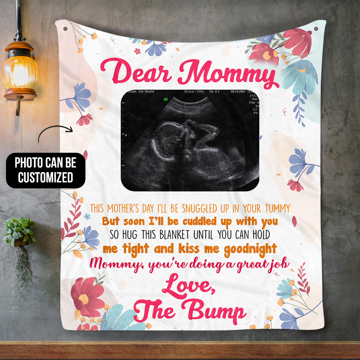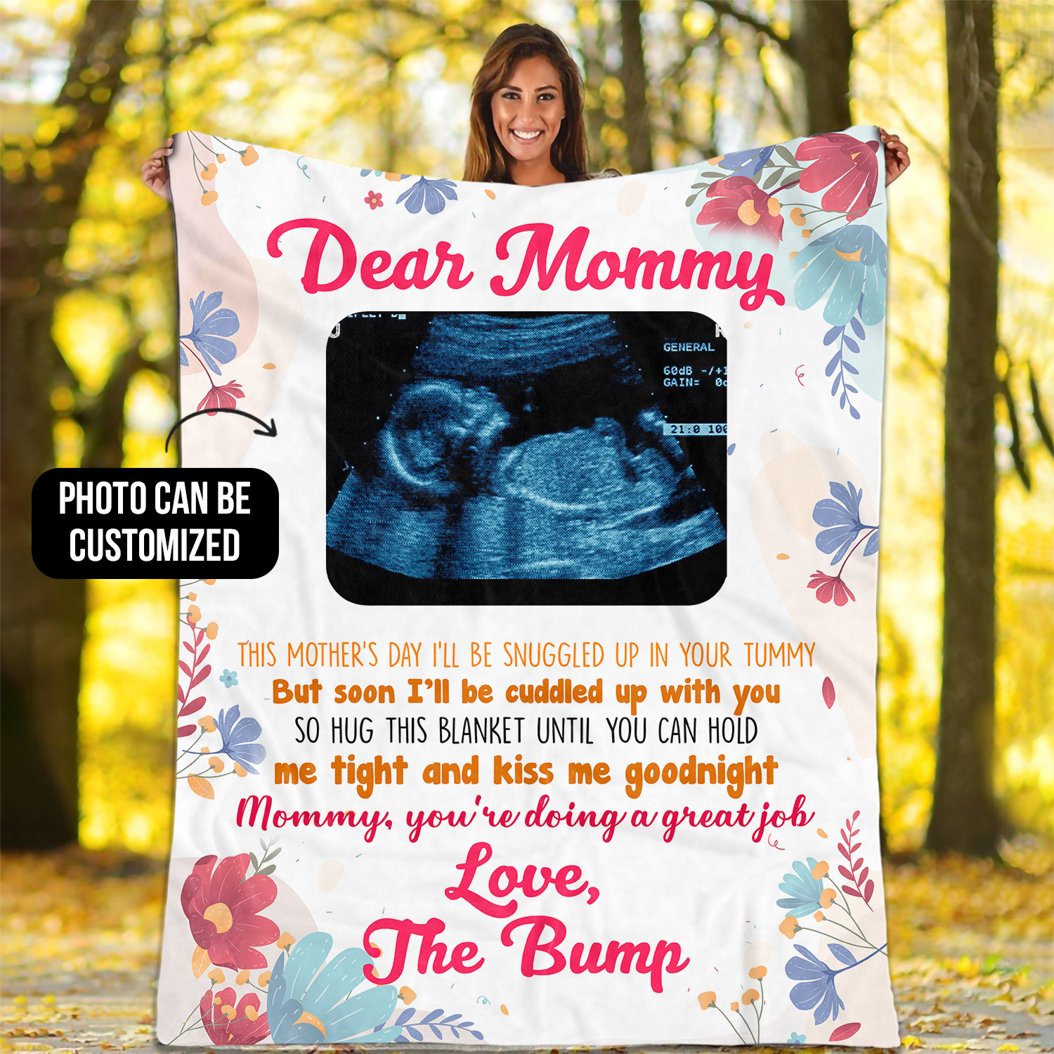 Let’s Shop Personalized Custom Photo Dear Mommy Love The Bump Sonogram Picture Fleece Blanket – First Time Mom Gift!