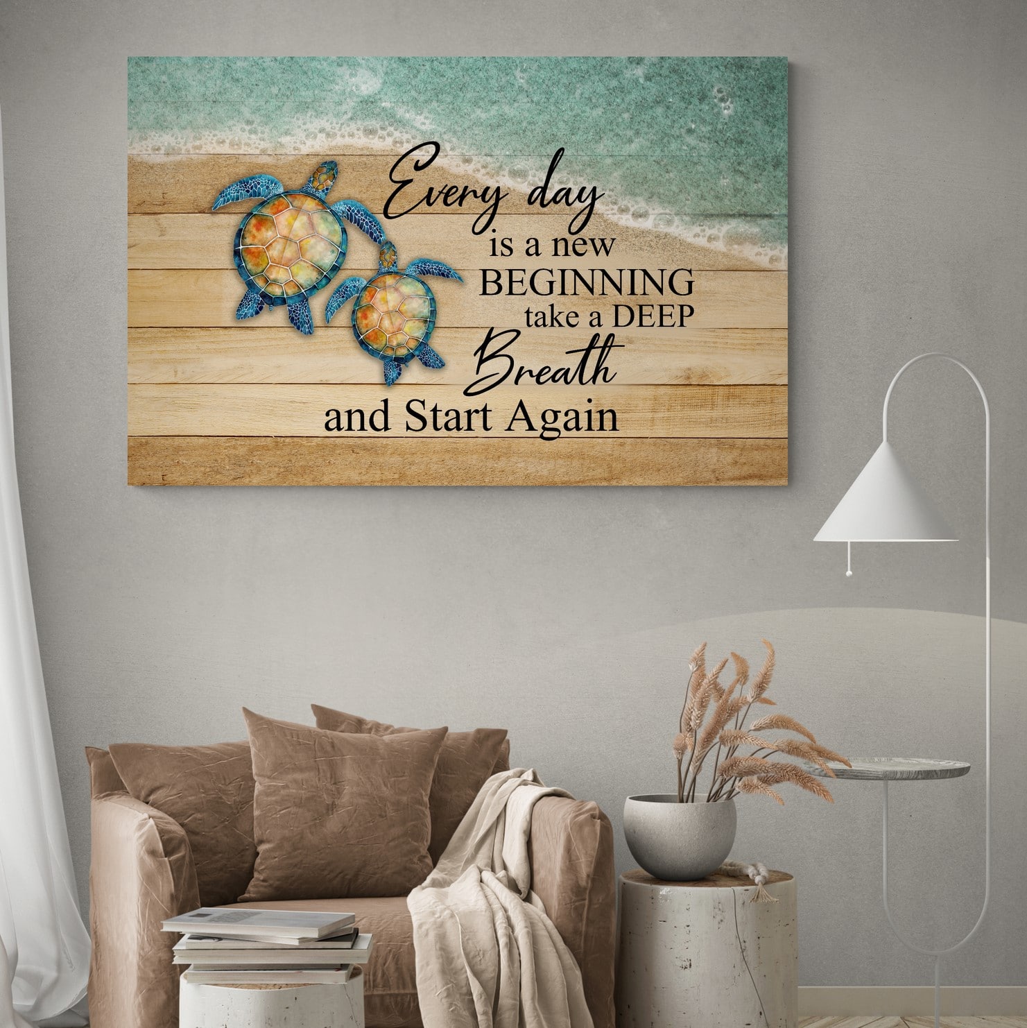 Let’s Shop Sea Turtle Every Day Is A New Beginning Take A Deep Breath And Start Again Framed Canvas – Unframed Poster!