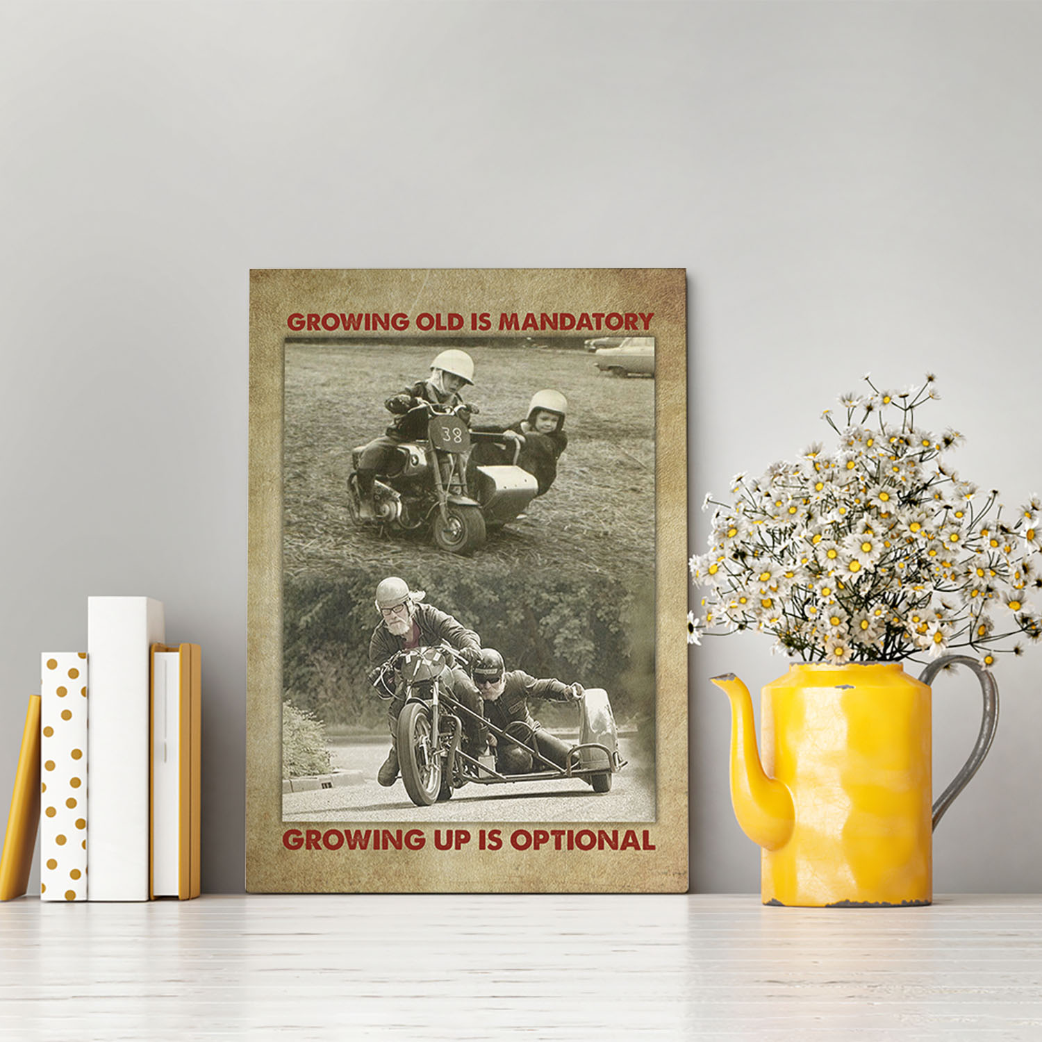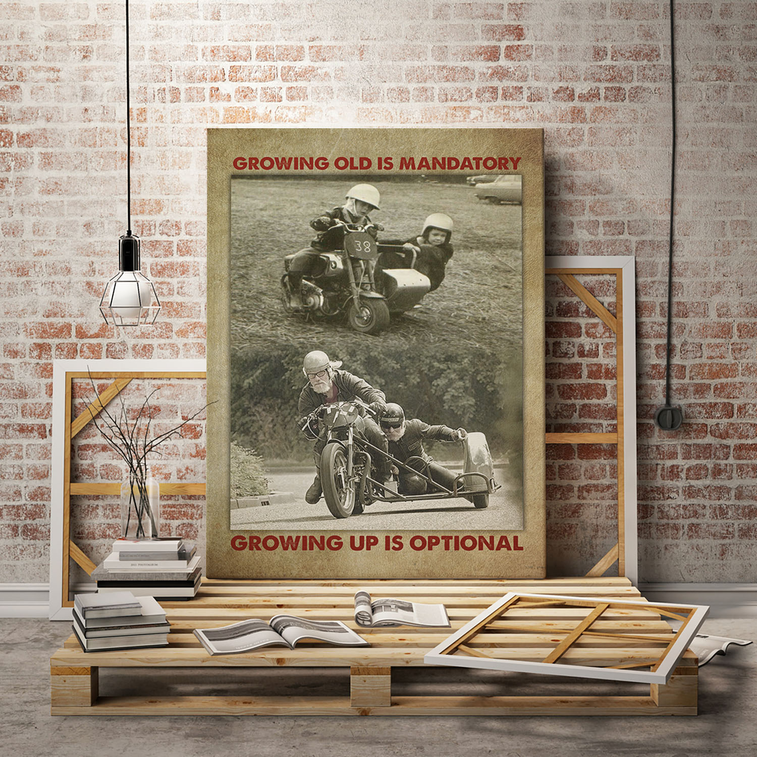 Let’s Shop Motorcycle Gifts For Men Growing Old Is Mandatory Growing Up Is Optional Framed Canvas – Unframed Poster!