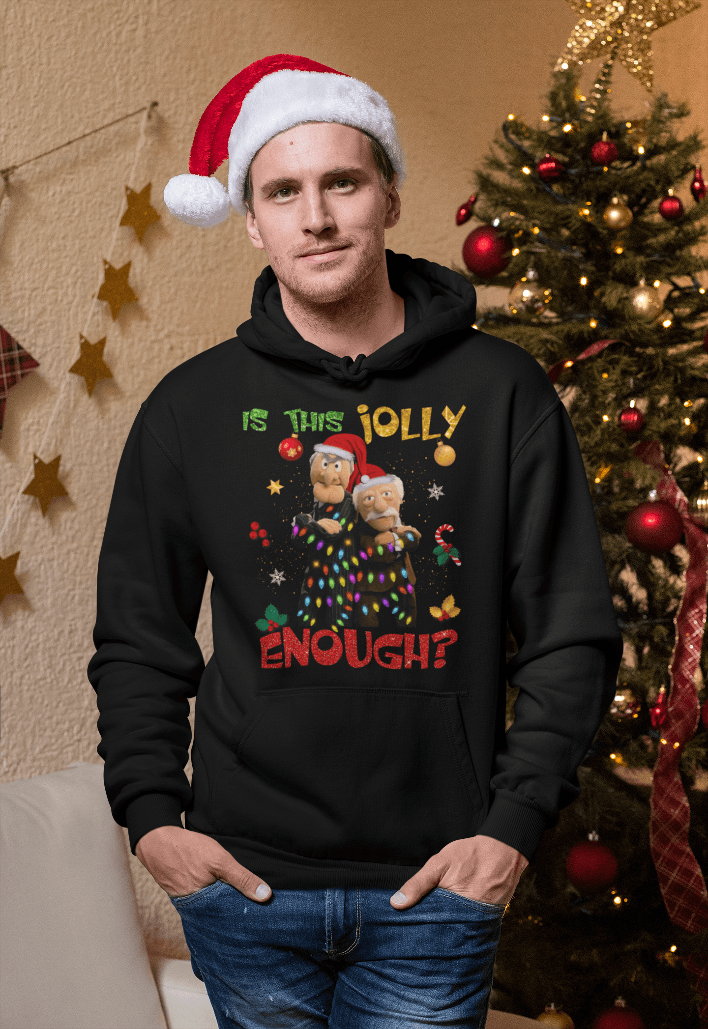 Is This Jolly Enough Mupp-ets Christmas Light Hoodie – Long Sleeve – Sweatshirt