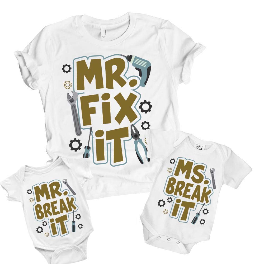 Let’s Shop Ms Break It Baby Onesie – Baby Infant Bodysuit – Matching Mechanic Outfits For Dad and Baby!